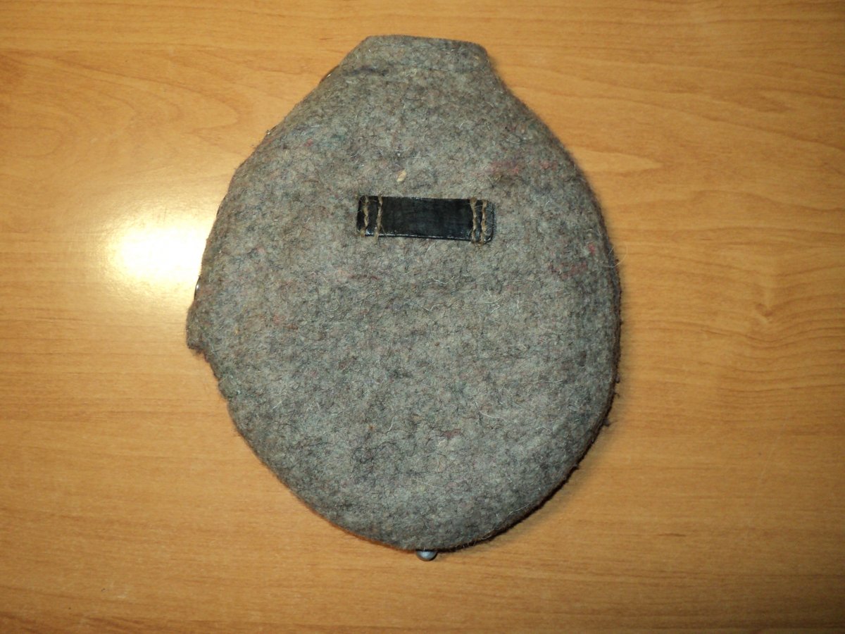 У вас получилась люфтовая фляга, у них вроде кожа была коричневая. Хотя может я и ошибаюсь. Можно было еще чем-то прочертить линии вдоль ремней. Вот пример фляг с такой оплеткой.