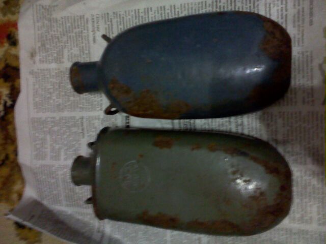 Две разные фляги Австрии по 1МВ. Протекают на дне. На одной видно клеймо. Цена 100 гривен за две + бонусом прягу Австрии. Фото бонуса сделаю завтра.