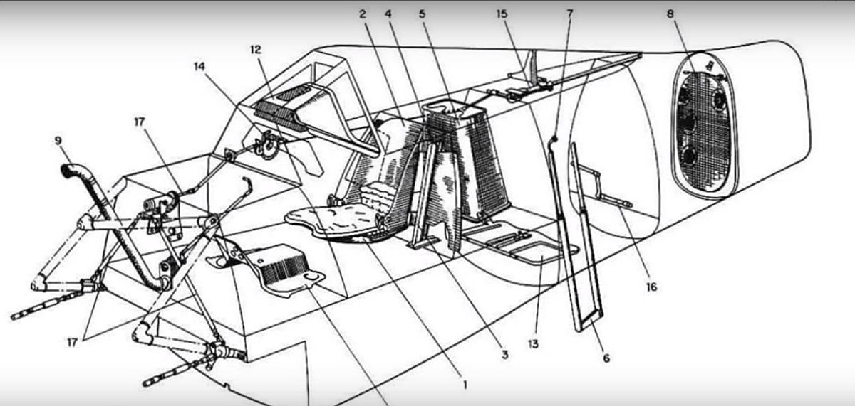 на схеме из D(Luft)T.2190 A-8 есть несколько загадочная деталь - в задней части фюзеляжа матерчатый фильтр (цифра 8) c резиновыми кольцами (шайбами) для пропуска тросов управления. В мануале пояснение его наличия - "для предотвращения попадания выхлопных газов в кабину". Кто-нибудь может более детально объяснить, как эта перегородка предотвращала попадание выхлопа двигателя в кабину, находясь вообще в задней части фюзеляжа? Мне совершенно непонятно. Часть выхлопа как-то могла попасть в кабину через выемку для заднего колеса?