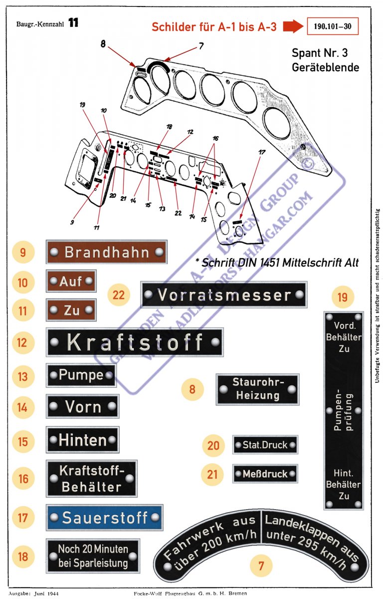Unterschiede an Deckel bzw. Klappen bei den Fw 190A und F, G Serie inbegriffen Deckel u. Klappenübersicht bei Fw 190A-1 bis A-4 Deckel u. Klappenübersicht bei Fw 190A-5 bis A-6 Deckel u. Klappenübersicht bei Fw 190A-7 bis A-9 * расположение Schnellverschlußen верхнего Motorverkleidung (1) на рисунке (А-7 bis A-9) не правильно! правильно: на А-7 смотрят так, как на рисунке (с красн.-правкой), а с А-8 смотрят все вниз.