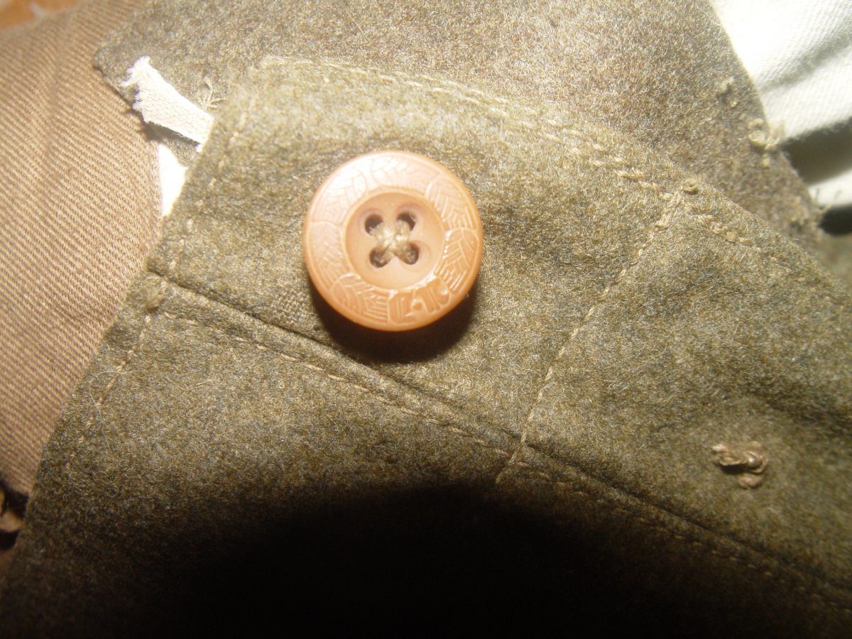 Судя по буквенным сокращениям R.A.D.B.A.Br. это бригада управления вещевого довольствия службы государственной трудовой повинности Reichsarbeitsdienst Bekleidungsamtbrigade. Пуговицы костяные. Шлеек для ремня нет только пуговицы для подтяжек . Почему то разные даты на клеймах. В одном случае 5 39 во втором 7 39. Интересует Ваше авторитетное мнение на счет аутентичности .Карманы только задний и маленький впереди.Боковые скорее всего спороты и зашиты. Не смог прочитать полностью шрифт на втором клейме L 180 HANN...... 539 08 97 122 106. Заранее благодарен.