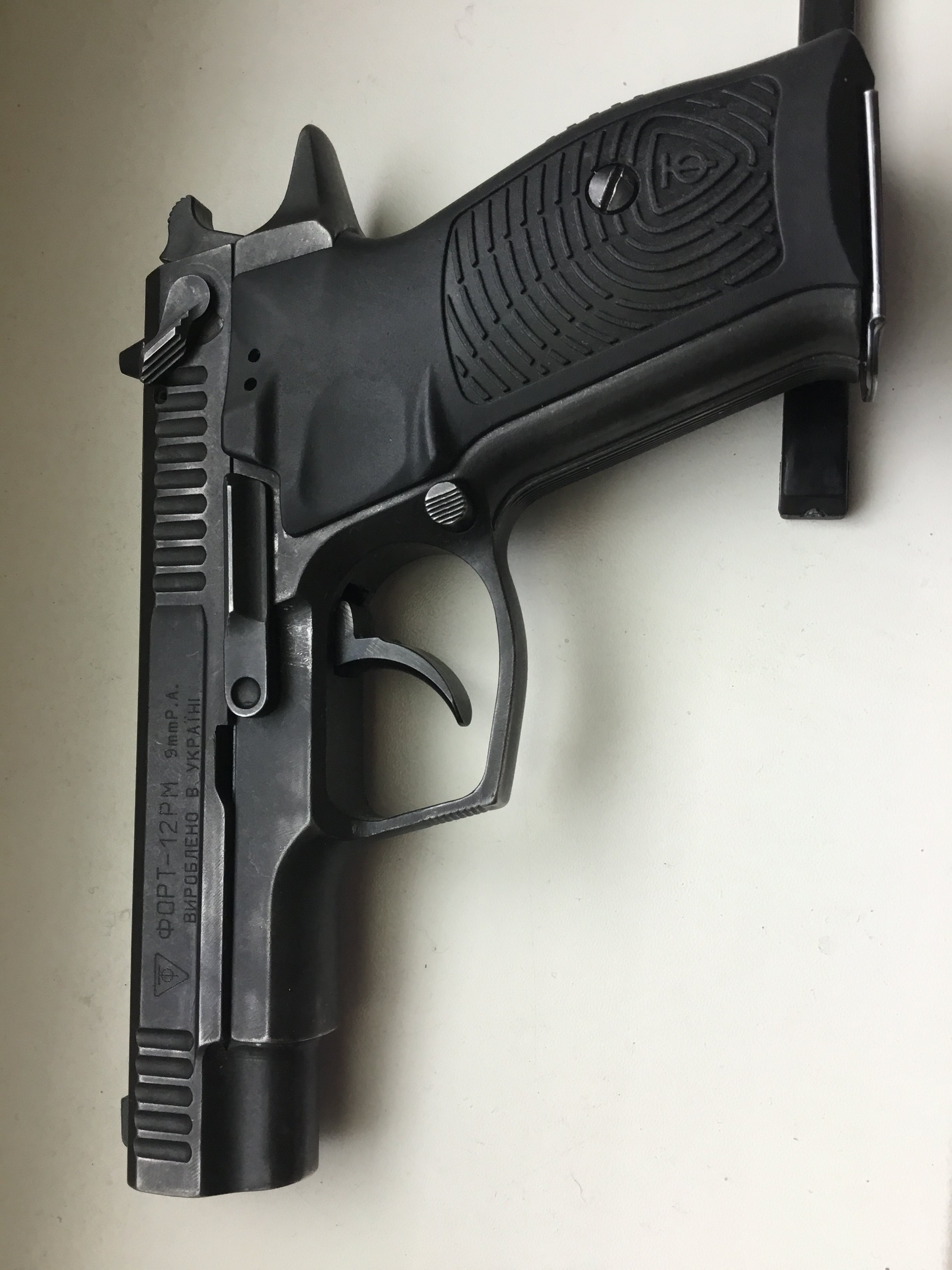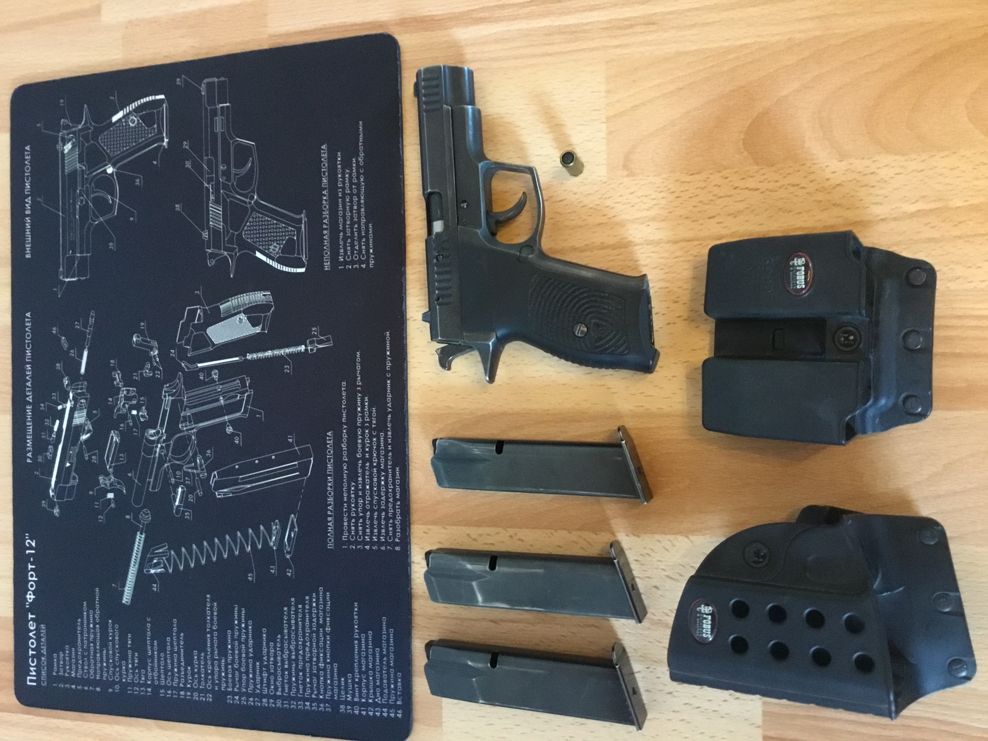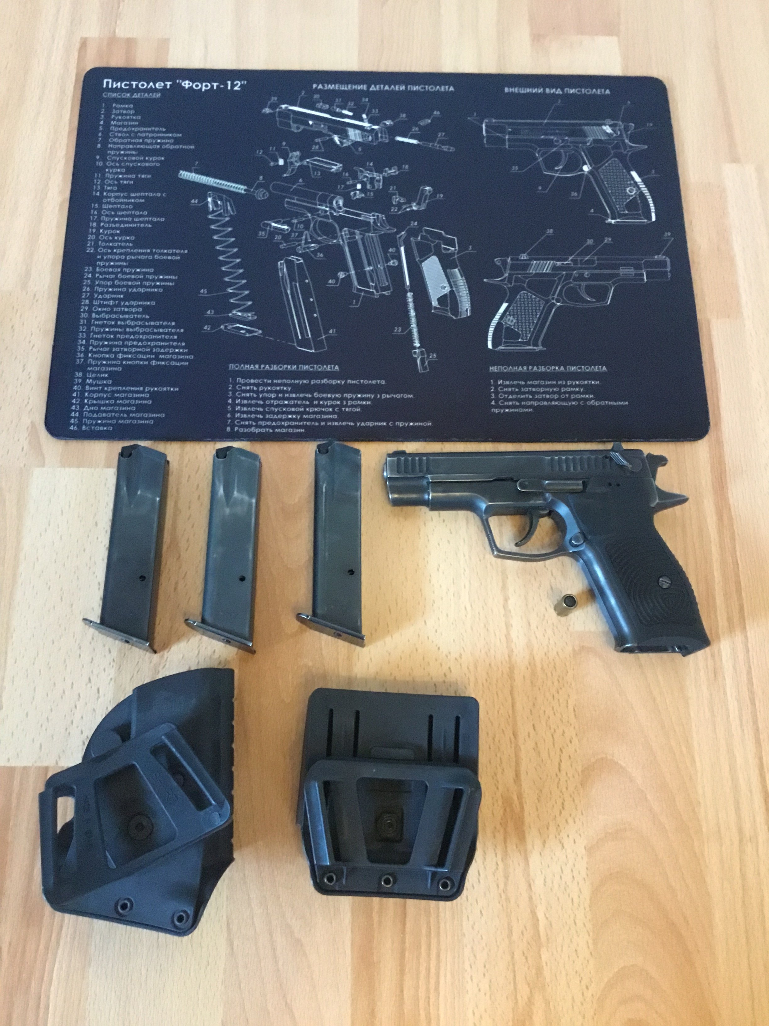 Продам терміново. Без змін та втручань. Товариш їде на роботу, на довго. Територіально Київська обл. Переоформлення Вишневе. Всі пропозиції в приват, в темі не смітим. Є сліди від носіння в кобурі та сумці. На функціонал не впливає. Технические характеристики травматического пистолета «Форт-12Р»: -Калибр 9 мм Р.А. -Длина ствола 95 мм -Длина пистолета 180 мм -Высота пистолета 131 мм -Ширина пистолета 32 мм -Масса пистолета с магазином без патронов 0,83 кг -Масса пистолета со снаряженным магазином 0,90 кг -Дальность эффективного действия 5-7 метров -Практическая скорострельность 40 выстр. / мин -Начальная скорость вылета пули 320 м \ с (максимальная, для сертиф. Патронов) -Вместимость магазина, патронов 16 шт. Настріл+- 350шт. Комплектація по фото Вартість: 17000грн. Дозвіл надано модератору.