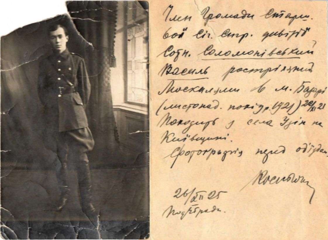 Військовослужбовець Дієвої Армії УНР, з кольоровими петлцями на комірі відповідно до наказу Ч. 276 від 24.04.1919 р. та круглою кокардою з тризубом на кашкеті. На звороті зберігся напис: "петлюровец, служил в 3-й сотне милиции. Доставлена из дела матери Ивана Бойко". До початку 1990-х років фото зберігалося в одній з архівно-слідчих справ КГБ-СБУ, потім було викрадене й продане колекціонерові, у якого в свою чергу — вилучено на митниці. Нині — у збірці Національного музею історії України.