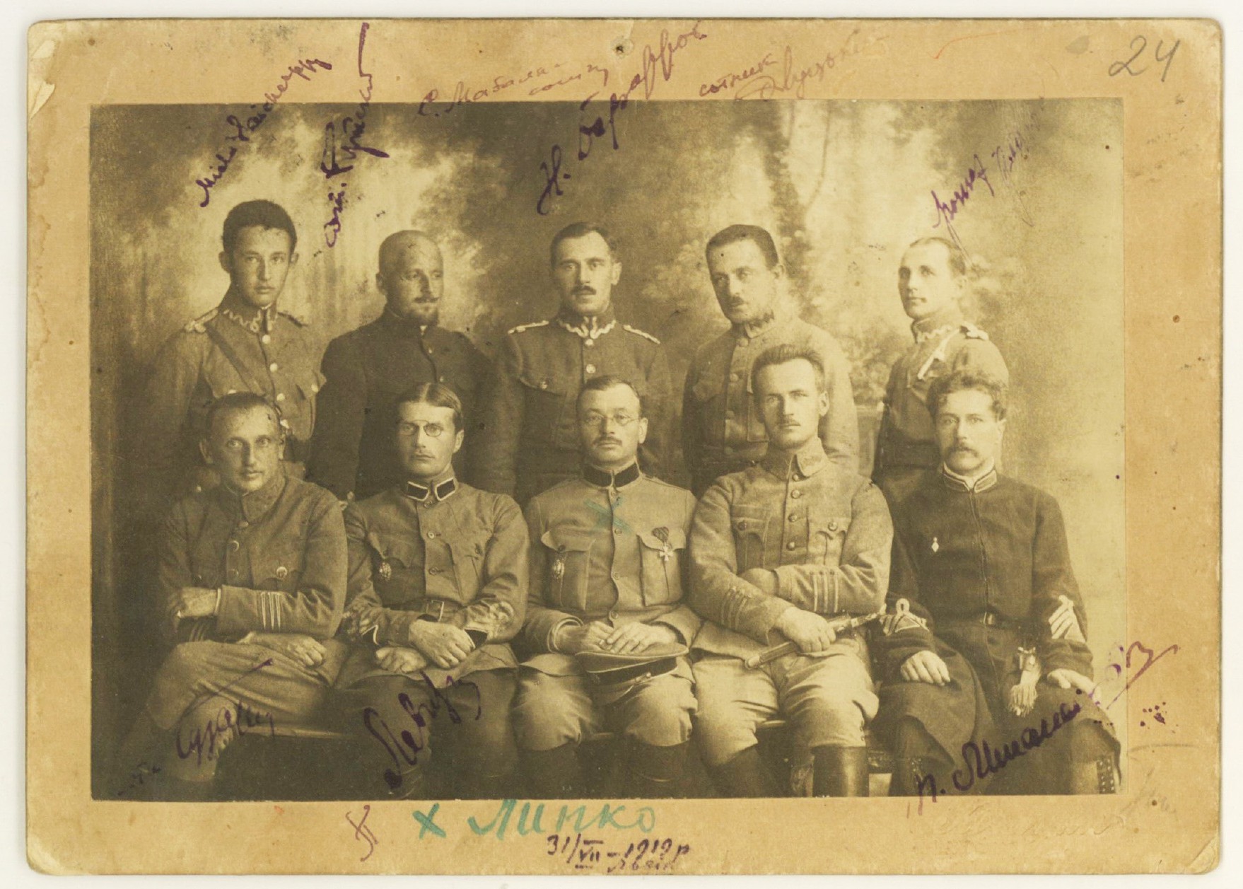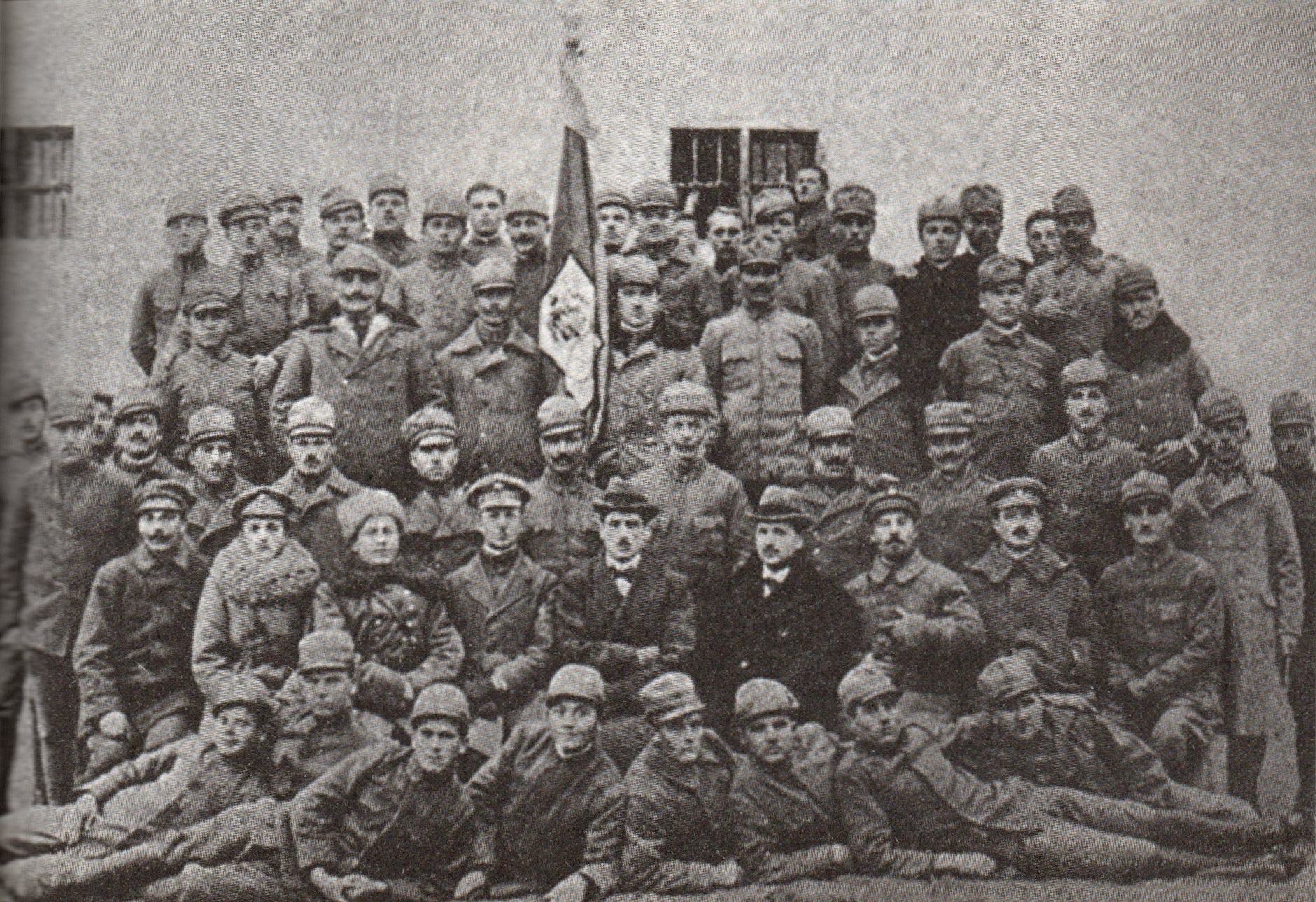 1-й Український італійський курінь. Старшини та підстаршини куреня з представниками місії УНР у м. Кошиці. Листопад 1919р.