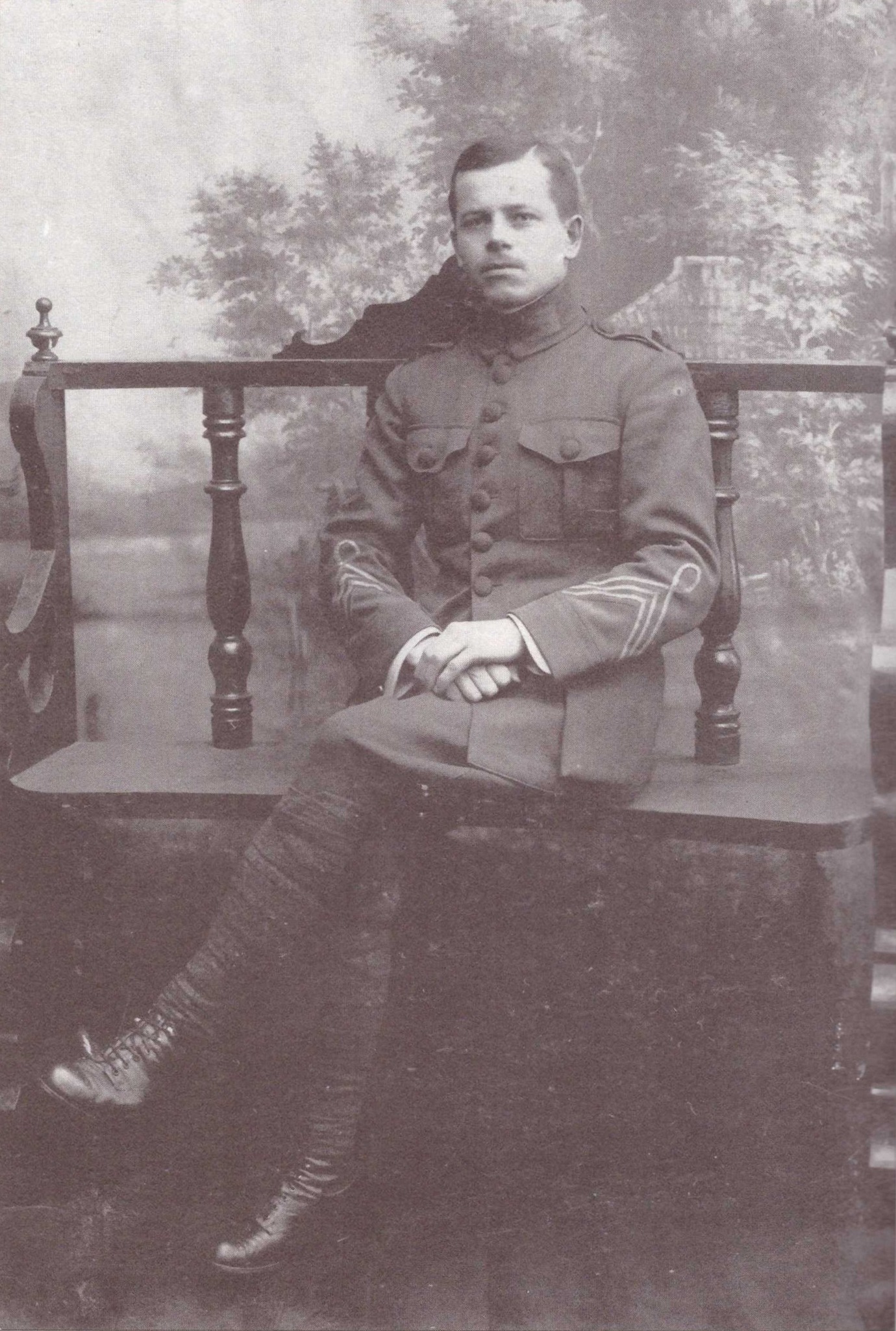 Старшина Січових Стрільців з портретом С. Петлюри на грудях. Фото орієнтовно другої половини листопада 1918 року.