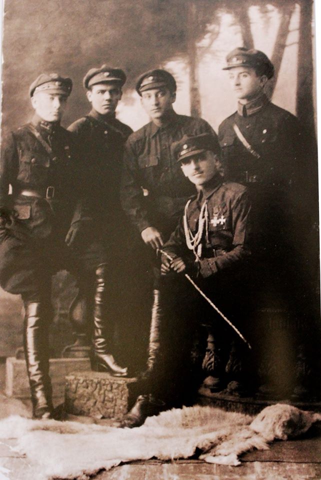 Табір в Каліші, Польща, осінь 1921 року. Лицарі Залізного Хреста "За похід та бої" (на грудях у кожного) зі складу 3-ї Залізної дивізії з керівниками 2-ї Волинської дивізії. 1-й ряд: 1. Володимир Лаврик, 2. підхорунжий Іван Назаренко, 3.полковник Григорій Чижевський, 4. генерал Олександр Загродський, 5. підполковник Олександр Недзвецький, 6. Микола Чижевський, 7. хорунжий Іван Шура-Бура (розстріляний під Базаром). 2-й ряд: 1.чотовий Дмитро Рябінін, 2. чотовий Павло Кузенський, 3. чотовий Савко Стасюк, 4. гуртковий Михайло Дяченко. 3-й ряд: 1. ройовий Прокіп Баснюк, 2. чотовий Тимко Михальчук, 3. чотовий Петро Демченко, 4. ройовий Вадим Околовський, 5. чотовий Семен Антонів, 6. ройовий Сергій Полонський, 7. козак Максим Викторів. (фото з родинного альбому Роберта Чижевського, онука полковника Григорія Чижевського). Більшість з них візьме незабаром участь у ІІ-му Зимовому поході.