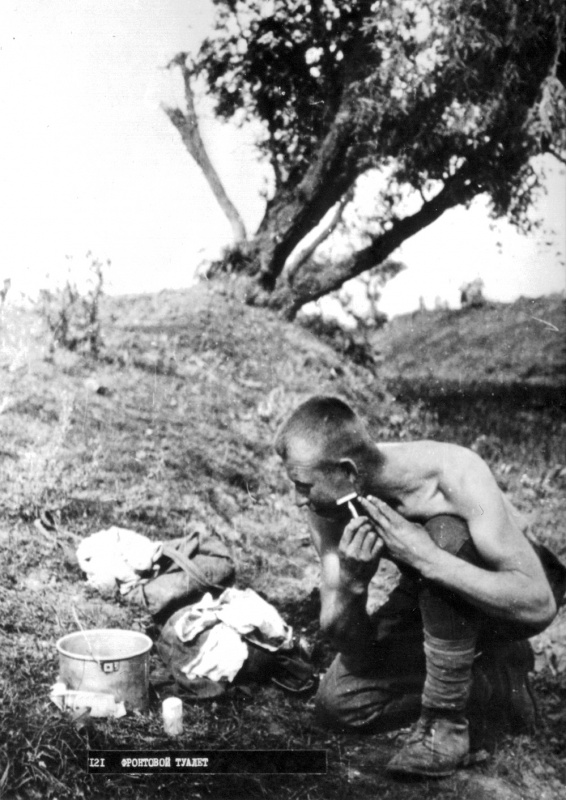 Полевая столовая комначсостава авиаполка. Приём пищи. На заднем плане - нечасто попадающая в кадр девушка-подавальщица.