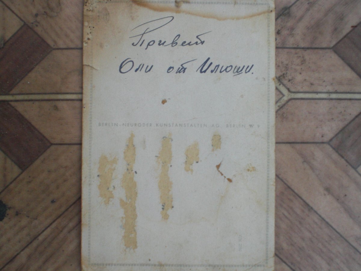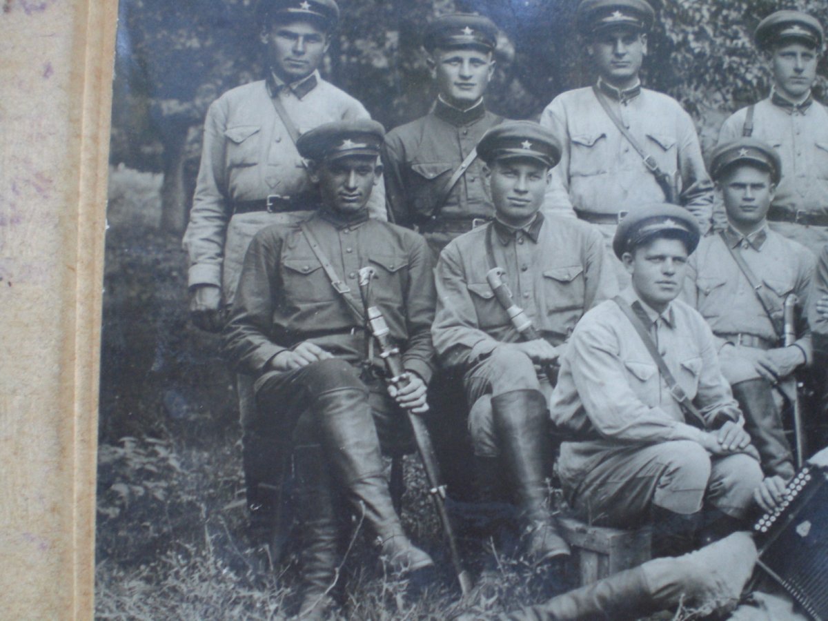 Доброго. Вот такие ( чердачные) кавалеристы. И открытка. Подобной тематикой особенно не интересуюсь. Но такое фото заинтересовало. Отличное качество. Были в рамке под стеклом. Стекло лопнуло, а рамку видимо забыл. Размер фото 23/16. С картонкой 31/25. В центре , так понимаю по ромбам, два ком отделения( два ромба на петлицах) и ком. взвода ( три ромба). На какой период фото? Открытка . Вроде восточной пруссии. Отправлена в 45 на Родину. Надписи на немецком затерты. Расставаться пока нет особого желания. Но хотелось бы услышать мнение экспертов по цене фото и открытки. Можно немного доп инф. по данным предметам. Охотно выслушаю. С Ув. P.S. Фото приклеено. Возможно были какие то надписи , как просветить? Рентген?