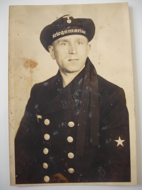 Допоможіть оприділити і оцінити.Що означає зірка на рукаві киеля? Формат 9 х 13. Фото дісталося від чоловіка з села на заході України,по його словам ( на фото його родич,українець який служив в мор.флоті фашистів)
