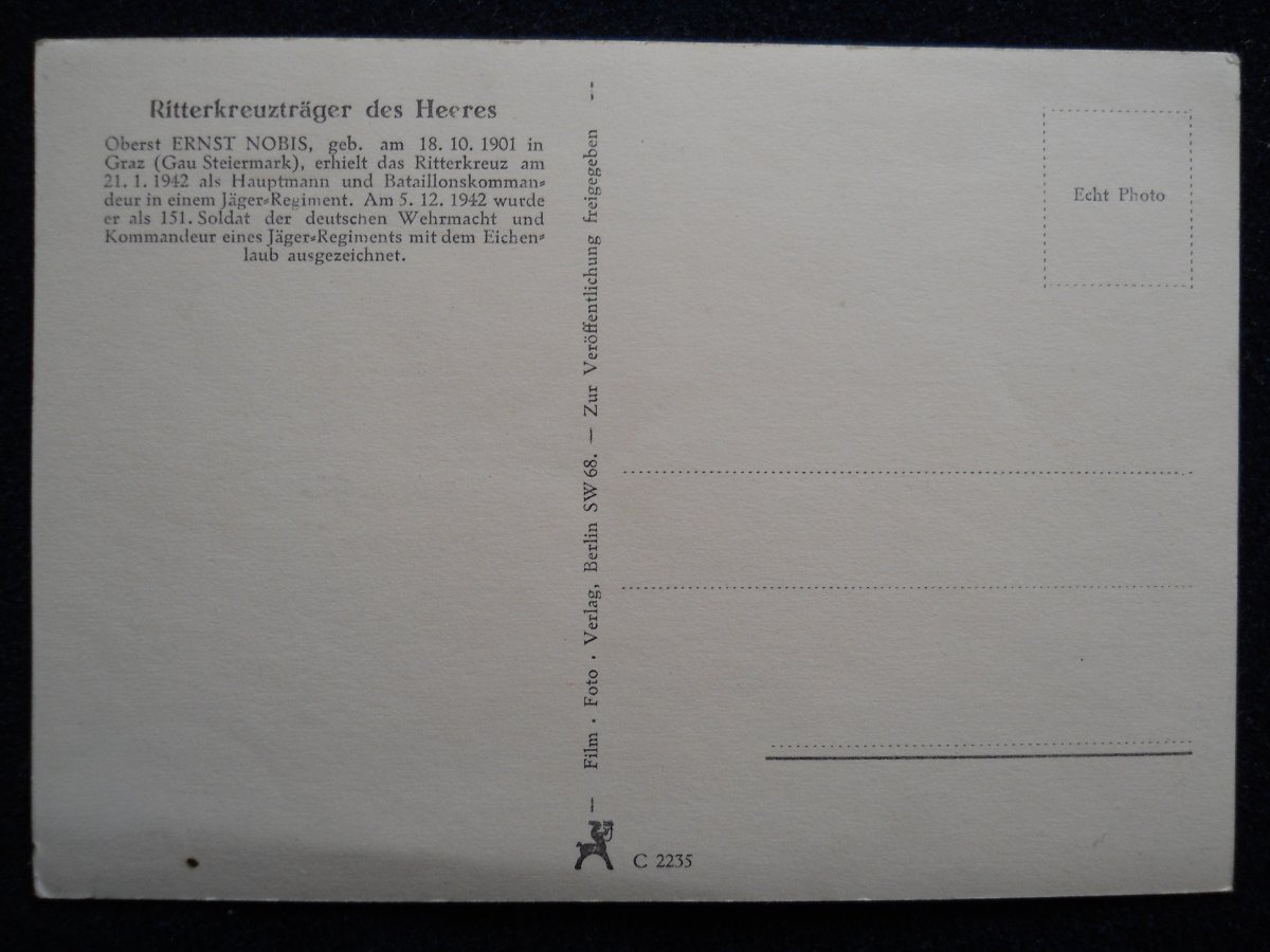 Фото кавалера рыцарского креста с дубовыми листьями. Службу начинал с альпийских стрелков в Австрии а после войны работал над формированием новой австрийской армии, ну, в общем в сети о нем инф. есть. Интересует цена фотокарточки. Покупалось давно у известного торговца с Германии.