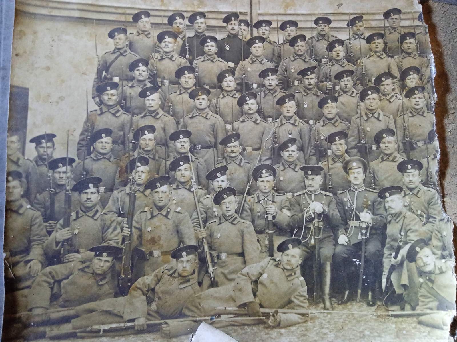 Вітаю, попало до мене таке цікаве фото, нажаль хтось його перервав. В багатьох присутній знак «За отличную стрельбу». На зворотньому боці є напис «Фома Черв’як», вдалося дізнатися, що він був нагороджений двома георгієвськими хрестами 3 і 4 ст. Хрести отримав на службі в 277 Переяславському полку. Можливо на фото підрозділ цього полку?В одного з офіцерів цікава шашка, мабуть наградна, можливо хто може визначити фото більш детально. Наперед дякую. З повагою.