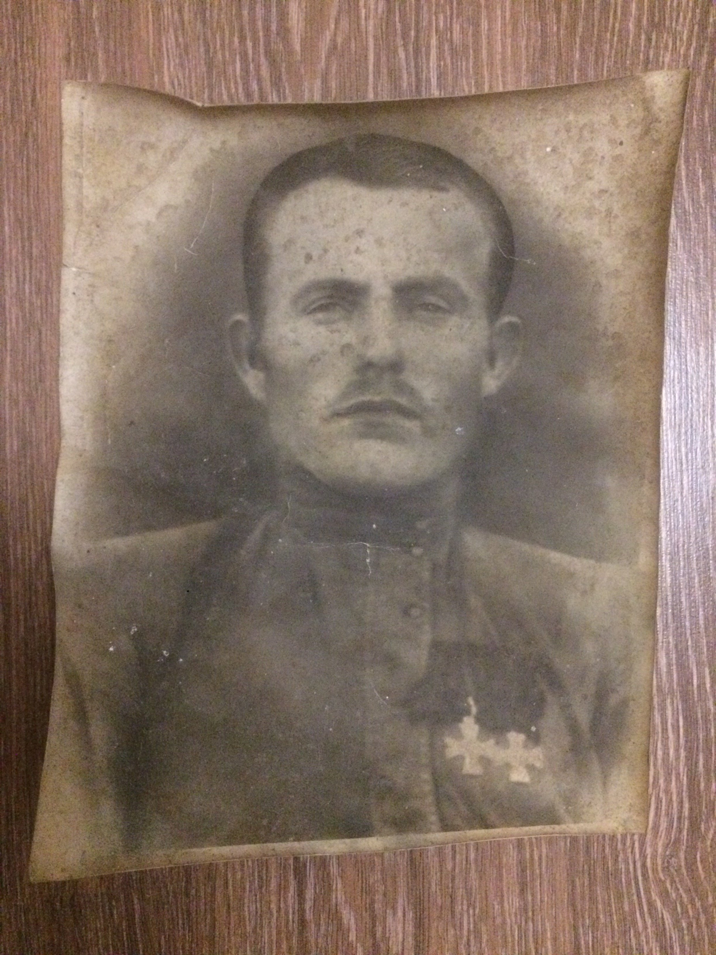 Все що зміг витиснути з телефона, вибачаюсь за якість. Погони червоного кольору. Фото з хрестами думаю що зроблене через декілька років, більш за все після госпіталю, коли його комісували. З повагою.