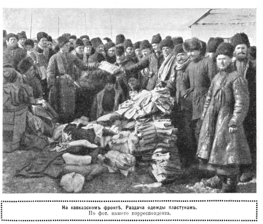 1. Журнал «Нива». На Кавказском фронте. Раздача одежды пластунам. 2. Журнал «Нива». Окопы, в которых живут наши солдаты и офицеры.