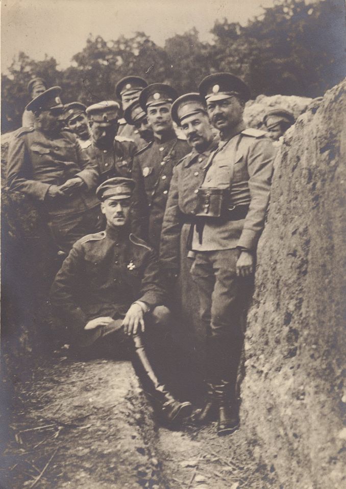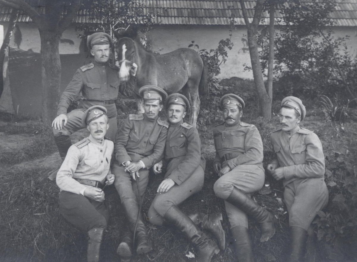 Они же. Офицеры Лейб-гвардии Егерского полка. 1916г. Слева направо - Нотбек Вячеслав Владимирович, Кербер Виктор Людвигович, Сиверс Николай Валентинович, Родзянко Сергей Павлович, Раух Георгий Георгиевич, Петрово-Соловово Николай Михайлович.