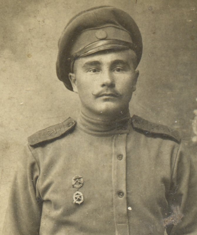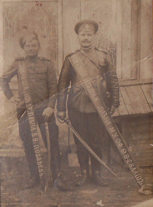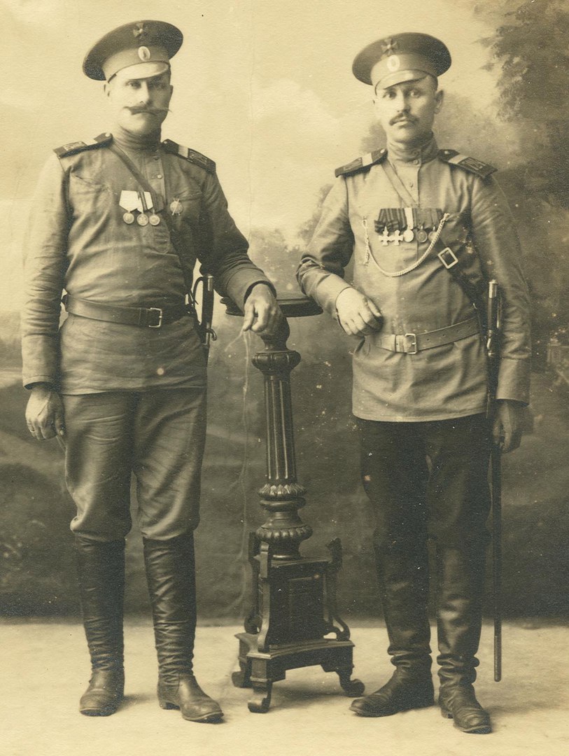 1. Младший унтер-офицер 68-го лейб-пехотного Бородинского Императора Александра III полка. 2. Вольноопределяющийся 5-го гусарского Александрийского Ея Величества Государыни Императрицы Александры Федоровны полка.