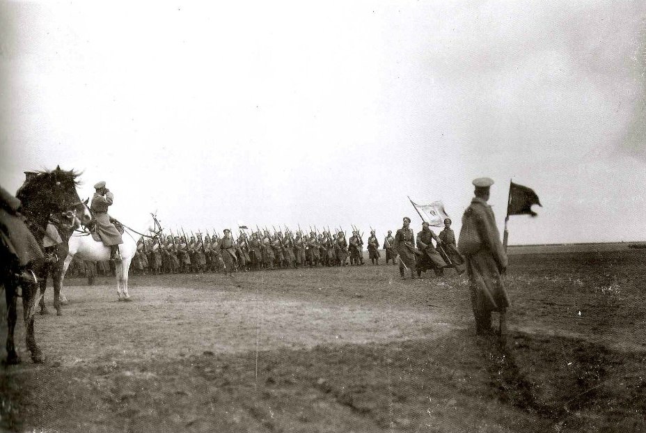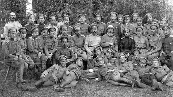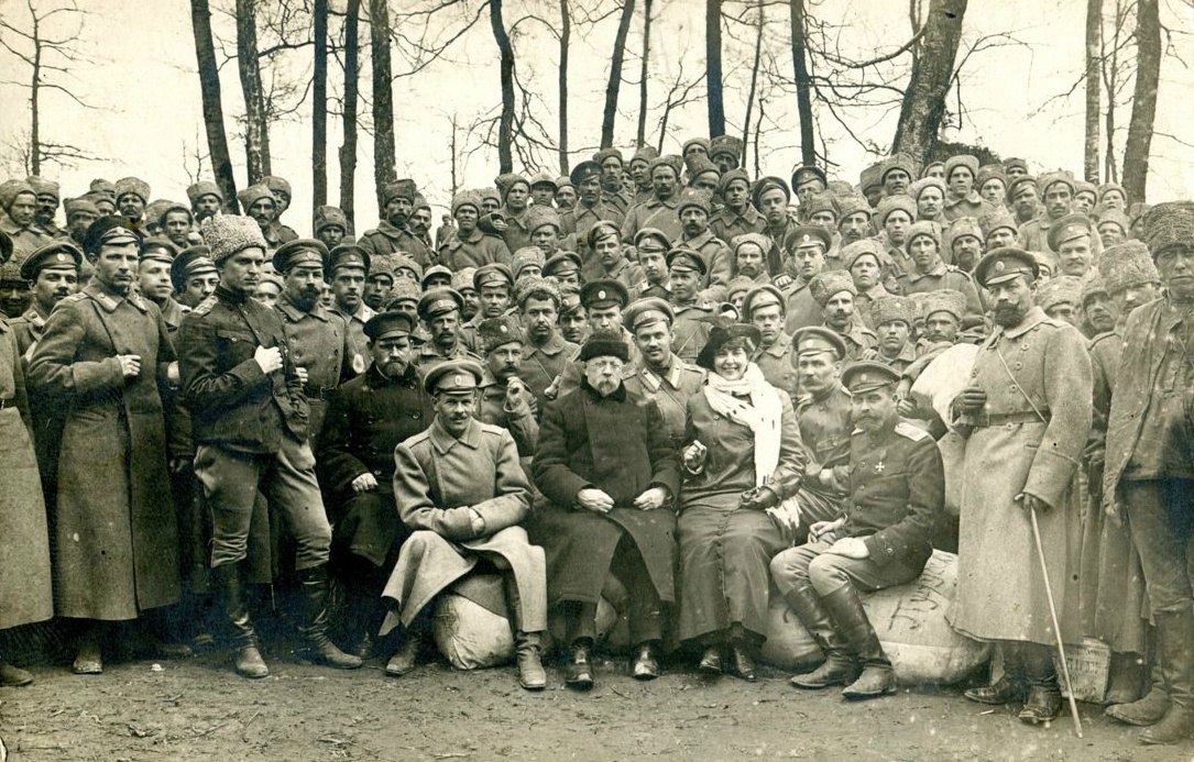 Интересна только тем, что на фото присутствует морской офицер, в армейской полевой форме с флотской кокардой временного правительства..Адъютант..