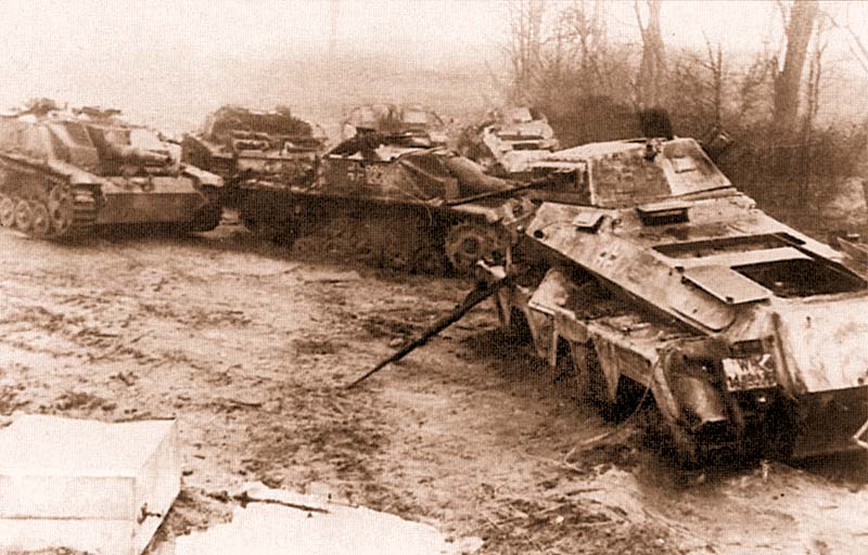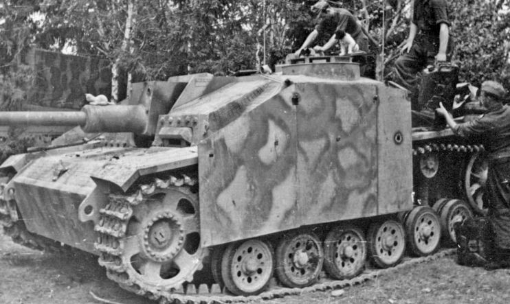 Что еще удивительнеё ,что кроме SS "Das Reich"-training batallion или вероятнее всего SS-Panzerjäger-Ausbildungs-und-Ersatz-Abteilung 3 ,такие машины как Sturmgeschutz с окурком в 1945 году применялись в боях еще некоторыми подразделениями .Сейчас покопаюсь у себя и отпишусь ,какие это были подразделения .Может да же фото разищу.