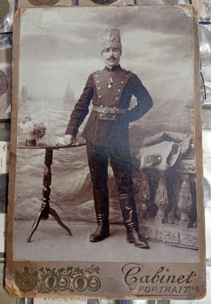 Камрады,можно определить подразделение в котором служил этот солдат,фото сделано в Одессе,фотограф Ф.Васиди (Артиллерийский переулок).На фото можно увидеть шинель с шифровкой по всей видимости Шефа полка Великого князя Николая Николаевича старшего.Он был шефом 9-го гренадерского Сибирского и 8-го драгунского Астраханского полков. Различие было лишь в пуговицах и приборном металле (у гренадер золотой, у драгун серебряный). На втором фото он же уже с офицерскими погонами сфотографирован 20 июля 1917 года в Проскурове (Хмельницкий).На первом фото на груди по всей видимости медаль «В память 300-летия царствования дома Романовых»: