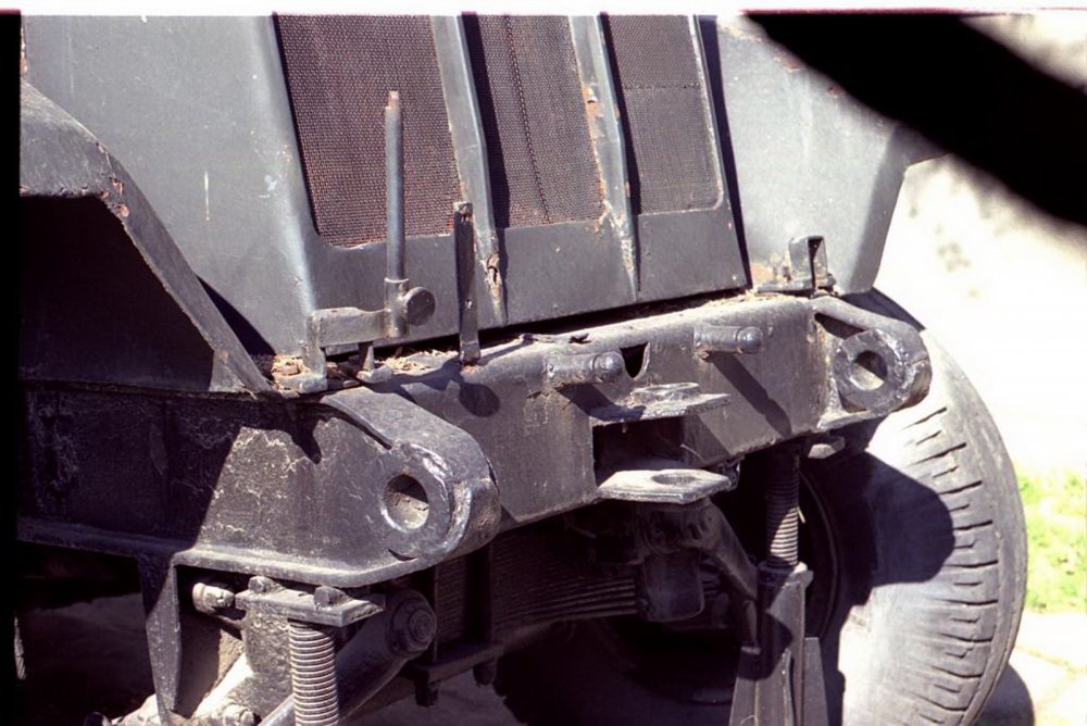 Да он и сам какой-то помятый. Посмотрите на капот и дуги над кузовом. Вряд ли грунтовали бы до рихтовки. Да и анесен этот странный цвет очень неаккуратно, что хорошо видно на катках.
