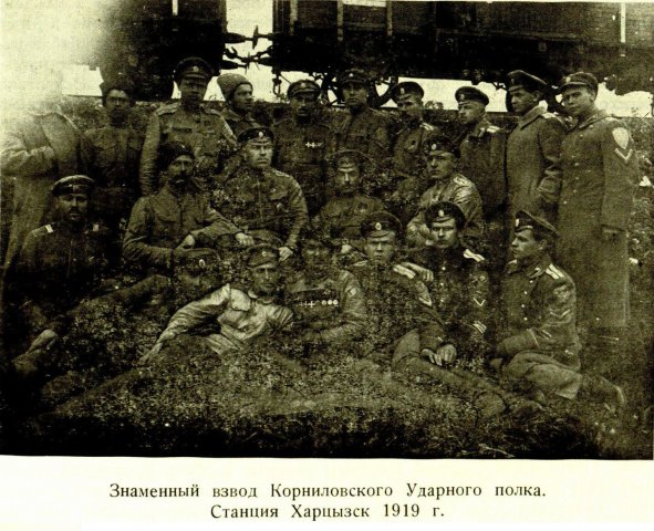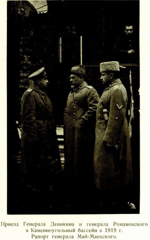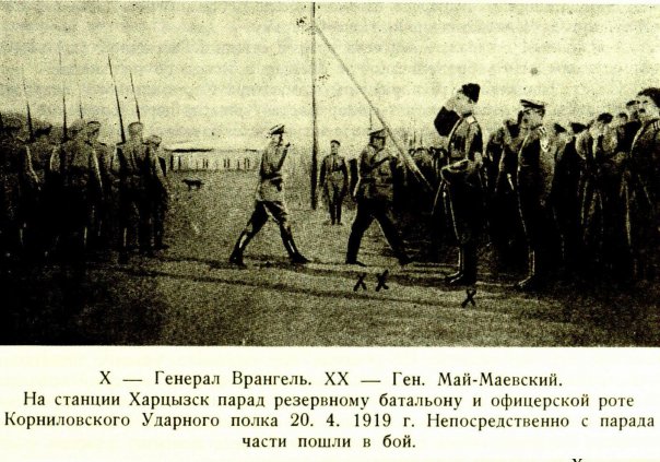1.Генералы Деникин,Романовский и Май-Маевский 1919г. 2.Знаменный взвод Корниловского Ударного Полка 1919г. 3.Станция Харцызск 1919г. 4.Генерал Топорков