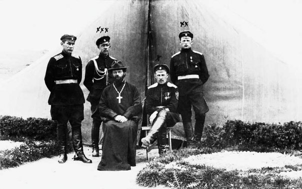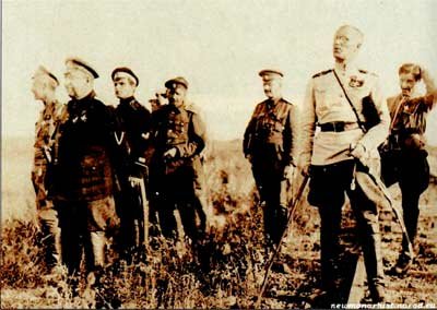 1.Молебен 2.Генералы Май-Маевский(второй слева на переднем плане) и Тимановский(справа на самом переднем плане в белом кителе) в сопровождении адьютантов и офицеров штаба осматривают позиции на фронте у ст. Лиски 3.Штаб Второго Офицерского генерала Дроздовского полка,в центре - коммендант г. Харькова, бывший командир полка полковник В.А. Румель 4.Белые офицеры на улицах Киева. На переднем плане генерал Кутепов