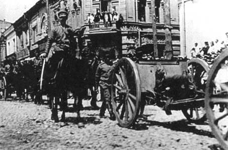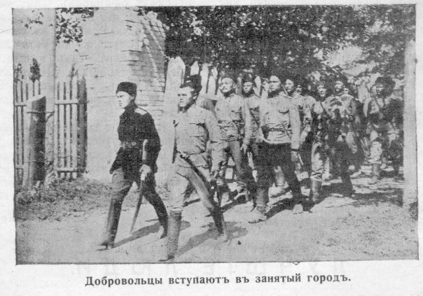 1.Артиллерийский расчет белых 2.Добровольцы вступают в занятый город 3.Штаб 1-ой дивизии 4.Добровольцы ведут бой
