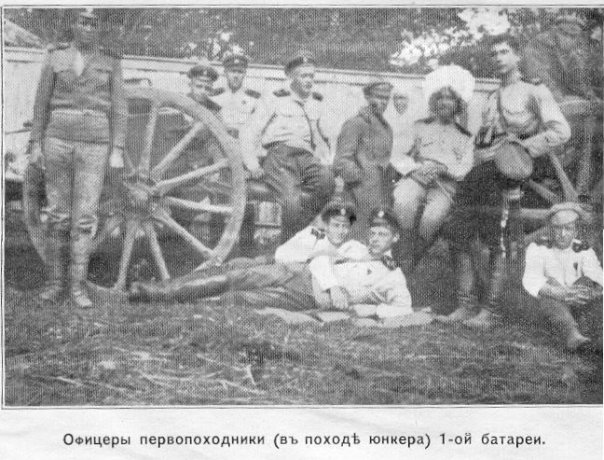 1.Офицерская рота при штабе главнокомандующего ВСЮР 2.Офицеры первопроходники 1-ой батареи 3.Батарея на позиции. 1920г. 4.Офицерская рота Корниловского полка
