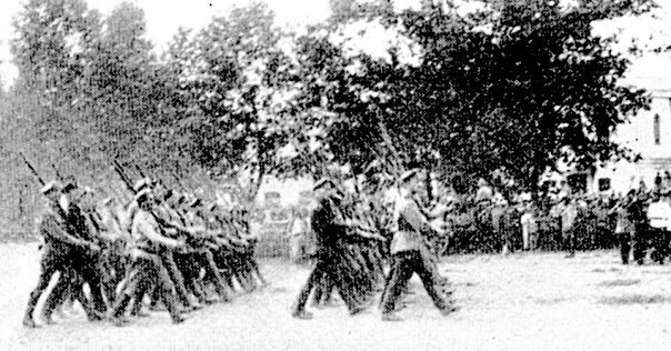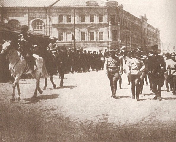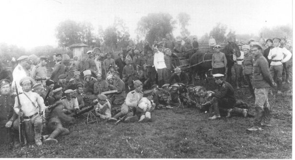1.Штаб 2-й Повстанческой армии. Село Кибяки Кирсановского уезда. Слева направо: поручик Башкарев, штабс-капитан Митрофанович; начальник штаба 2-й повстанческой армии А.С. Антонов; Главком поручик П.М. Токмаков; вахмистр Силянский, командир Пахотно-Угольского полка. Фотография сделана во время прощания с Токмаковым, который отбывал в Каменку на пост Главкома 2.Бойцы одного из полков Тамбовской повстанческой армии