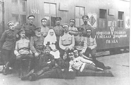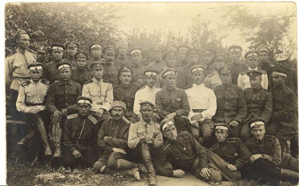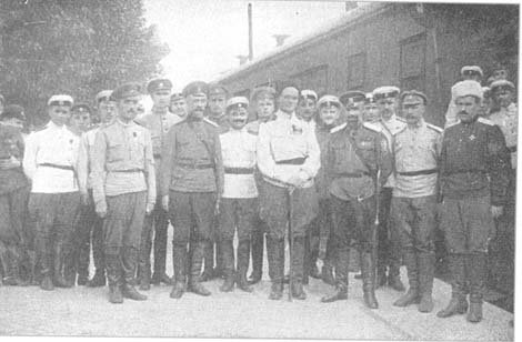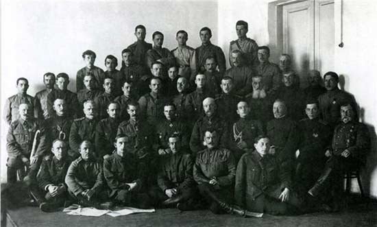 Генерал-лейтенант А.Н. Пепеляев и офицеры штурмового батальона Средне-Сибирского корпуса, участники взятия Перми. 28 февраля 1919г.