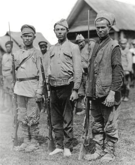 Предлагаю выкладывать в этой теме фото солдат и офицеров армии Верховного правителя России адмирала Колчака. 1. Рядовой 11-й Сибирской стрелковой дивизии (предположительно), Омск, 1919 г. 2. Солдаты-новобранцы одной из белых частей. Сибирь, 1919 г. 3. Саперы, Томск, 1919 г. 4. Солдат 3-го Барнаульского стрелкового полка, 1919 г.
