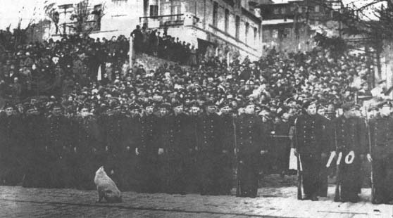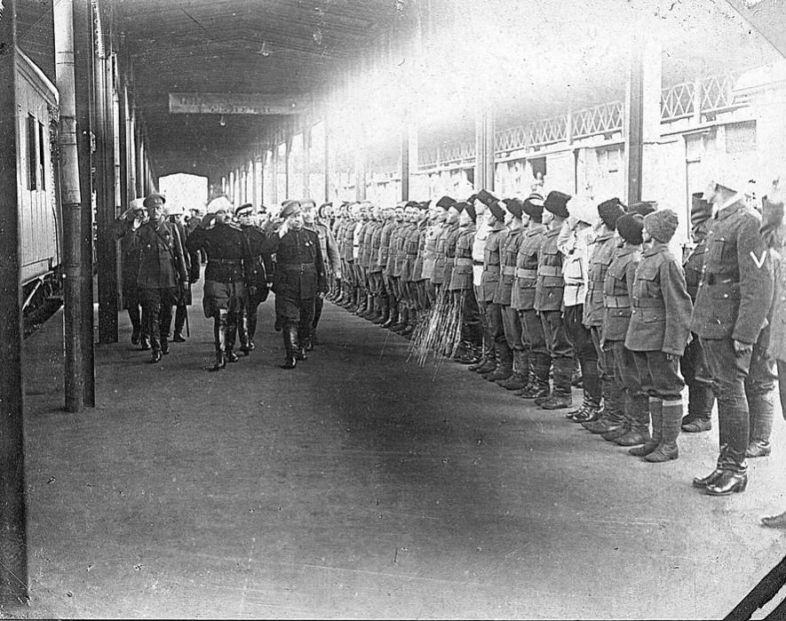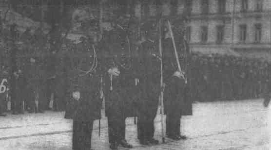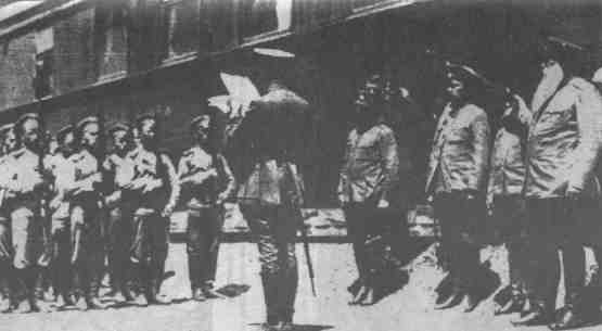 Оглашение приказа об отправлении на фронт. Справа - генерал Хорват