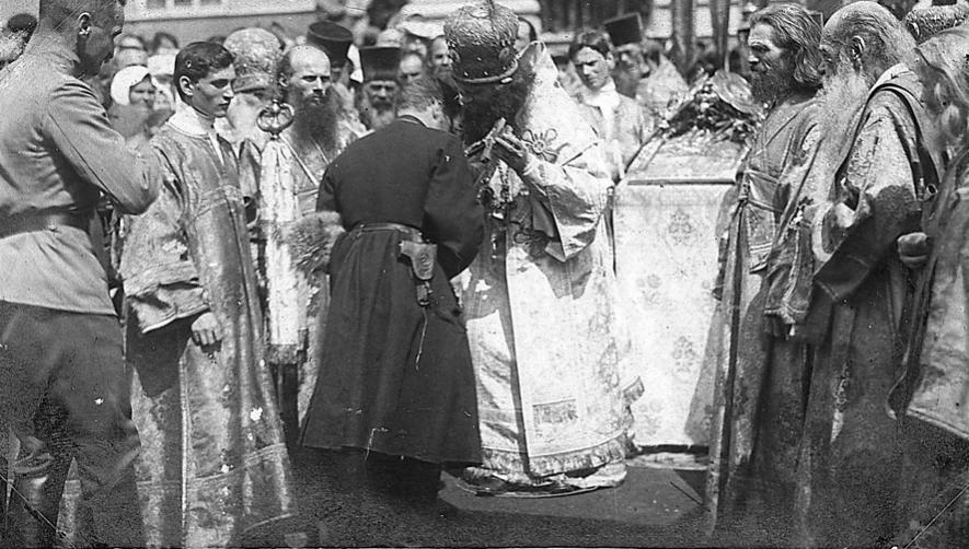Белгород, лето 1919-го. В центре с посохом Н.С. Тимановский, по правую руку от него И.П. Докукин.