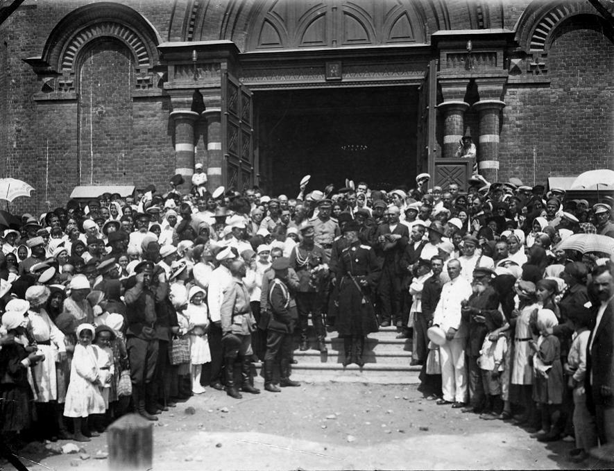 Генерал П.Н. Врангель на выходе из храма после парада и молебна. Царицын, 15 октября 1919 г.