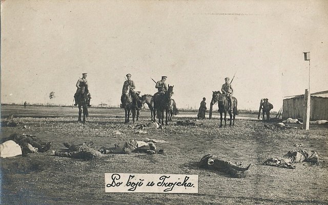 Панихида у символической могилы ген.Корнилова.30 марта 1919 г. Правее венка стоит прапорщик А.П.Кривошеев, рядом с ним Наталья Лавровна Корнилова. Высокий офицер в центре - полковник Л.Н.Трескин.Правее его стоит (за дамой) есаул Н.В.Милеев.