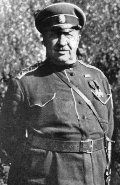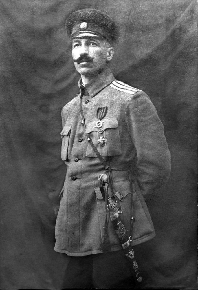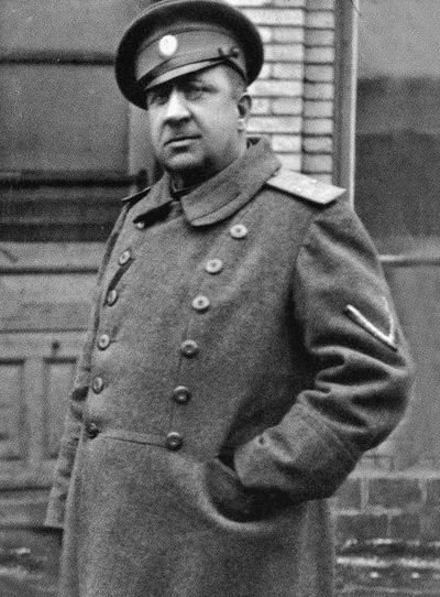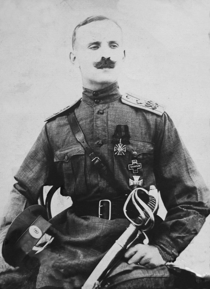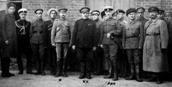 Генерал В.З. Май-Маевский и командир 1-го офицерского генерала Маркова полка полковник А.Н.Блейш (отмечен тремя крестиками).