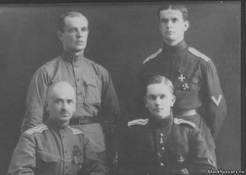 Братья Топорковы. Слева направо сидят Сергей, Владимир. Стоят: Александр, Георгий (декабрь 1919 г., Елисаветград). Служили в 5-ом Гусарском Александрийском полку.