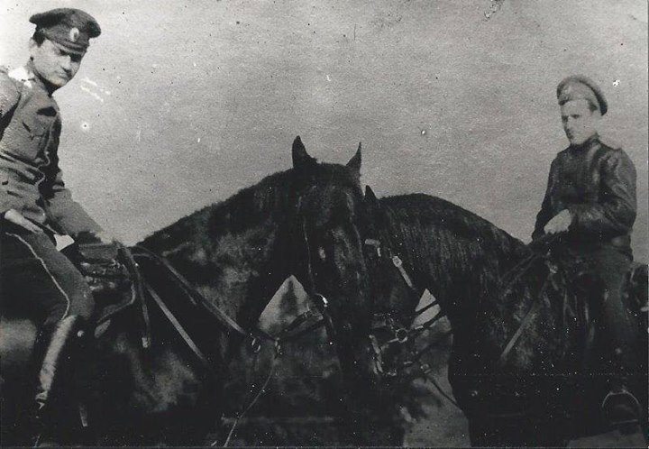 На фото слева - Курдюков Иван Демьянович. Закончил в 1915 году Одесский кадетский корпус, Елисаветградское кавалерийское училище. Поручик 11-го гусарского полка. В Добровольческой армии и ВСЮР. Убит 1919 году большевиками, ворвавшимися в госпиталь, где он лежал с ранением. Справа - Фон Розеншильд-Паулин Константин Николаевич. Закончил 1-й Московский кадетский корпус, затем в 1914 году Николаевское кавалерийское училище. Офицер 11-го гусарского полка. Во ВСЮР и Русской Армии до эвакуации Крыма. Ротмистр. На 1920.12.18 в составе 2-го кавалерийского полка в Галлиполи. В эмиграции в США, к 1965 редактор журнала "Жизнь Изюмских гусар", к 1967 сотрудник журнала "Военная Быль". Умер 1980.09.15 в Тарбе (Франция).