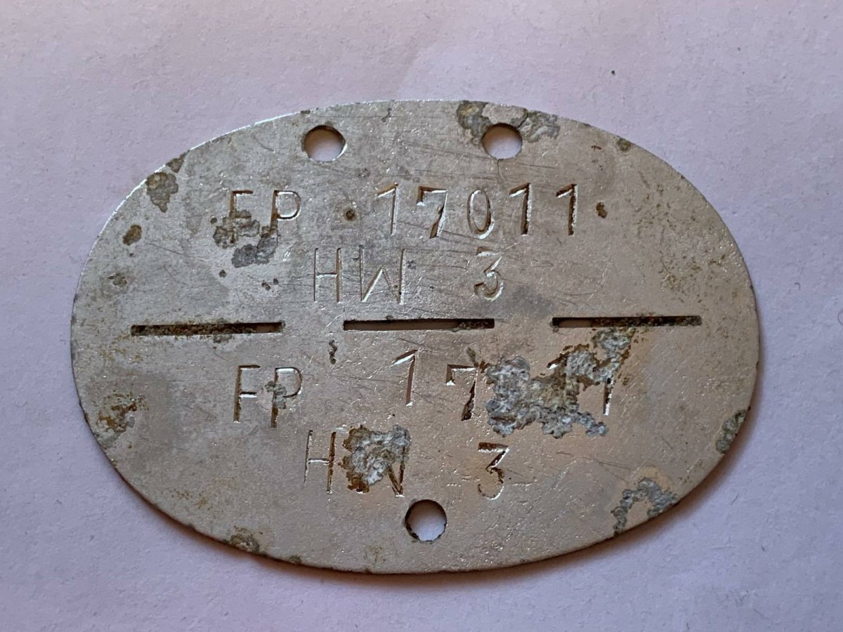 Номер полевой почты. Хиви. (Доброволец из местного населения). 17011 (Mobilmachung-1.1.1940) 1. kleine Kraftwagenkolonne Infanterie-Divisions-Kolonne 8 (28.4.1940-14.9.1940) 7. kleine Kraftwagenkolonne Panzer-Divisions-Kolonne 85 (25.1.1943-31.7.1943) 3. Kraftfahr-Kompanie Panzer-Divisions-Nachschub-Trupp 85. Видимо выдан в 85 службе снабжения, автомобильная рота снабжения.