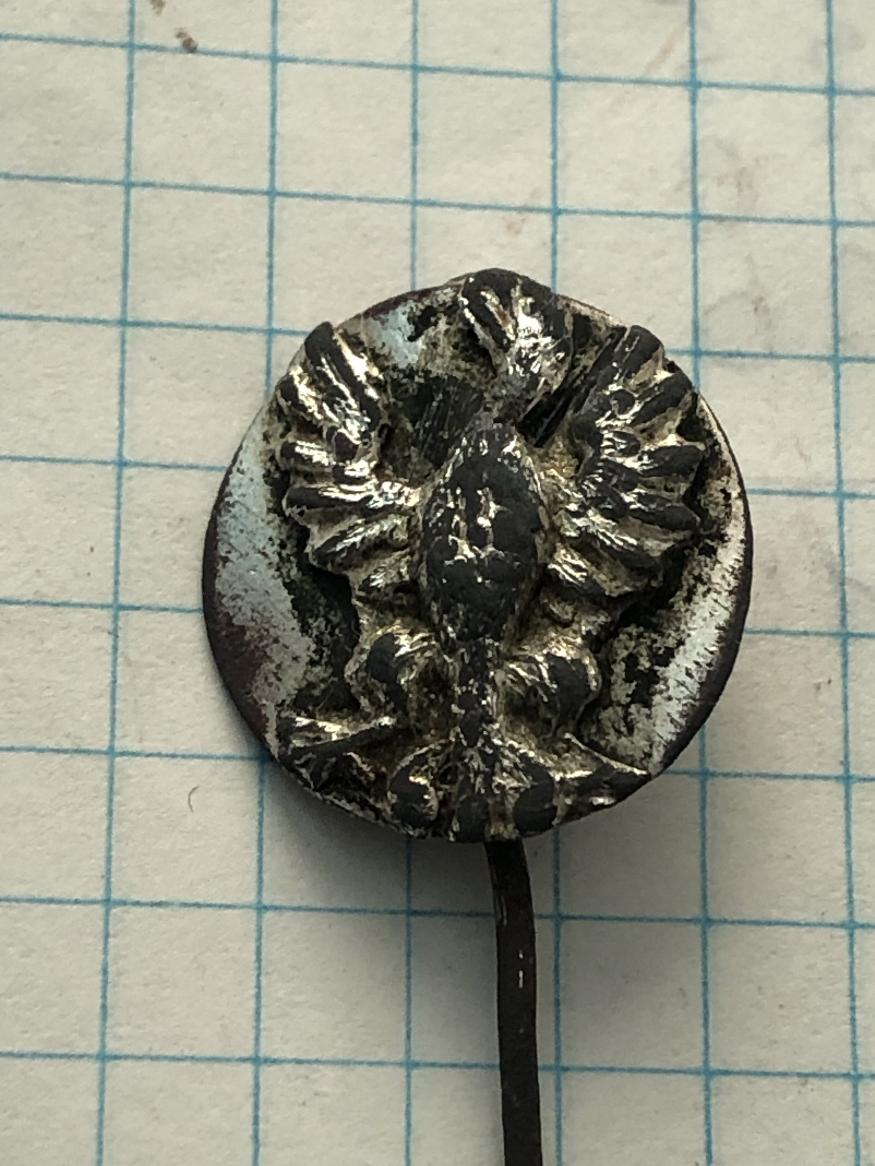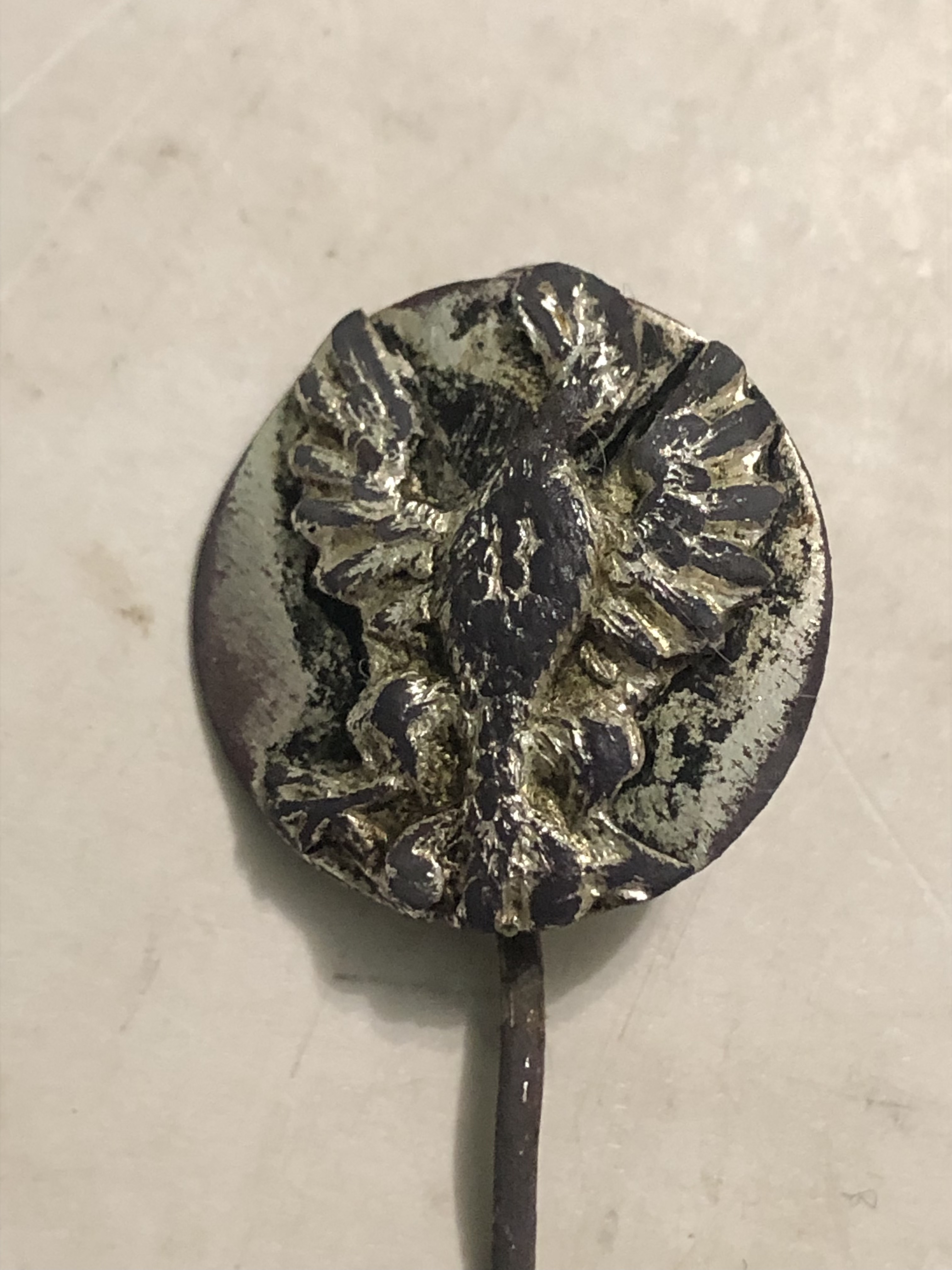 Доброго дня.Підкадкажіть будь ласка по предмету.Матеріал латунь в посрібленні.На орлику видніється цифра 13