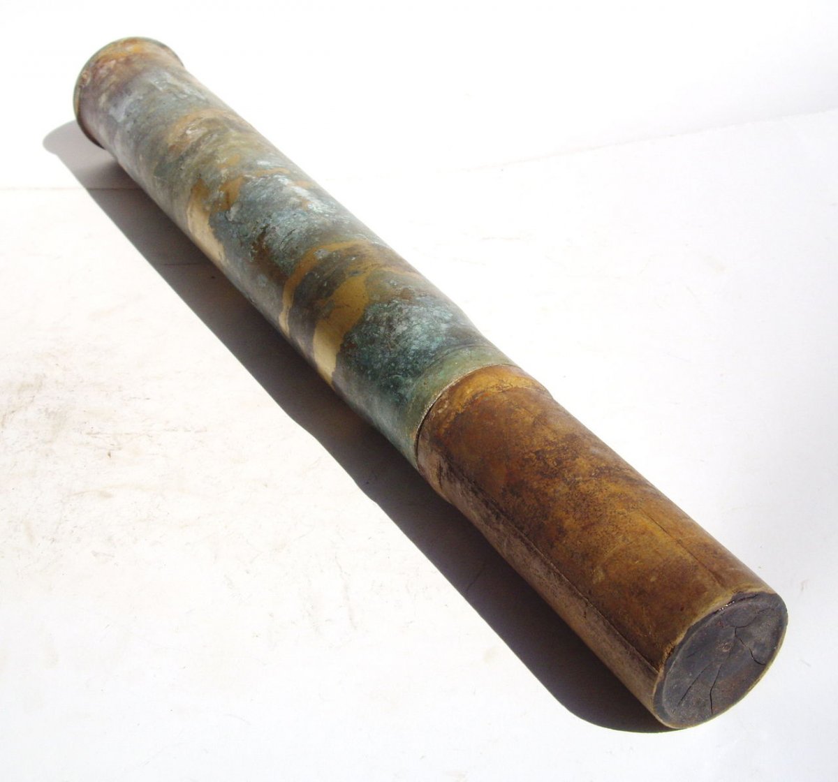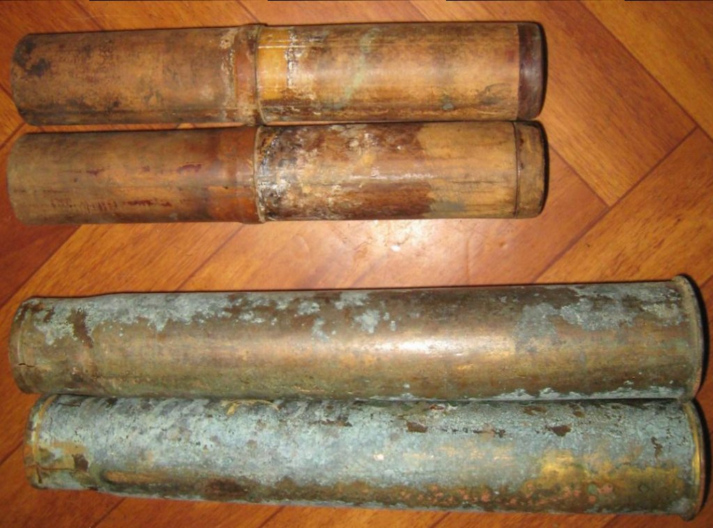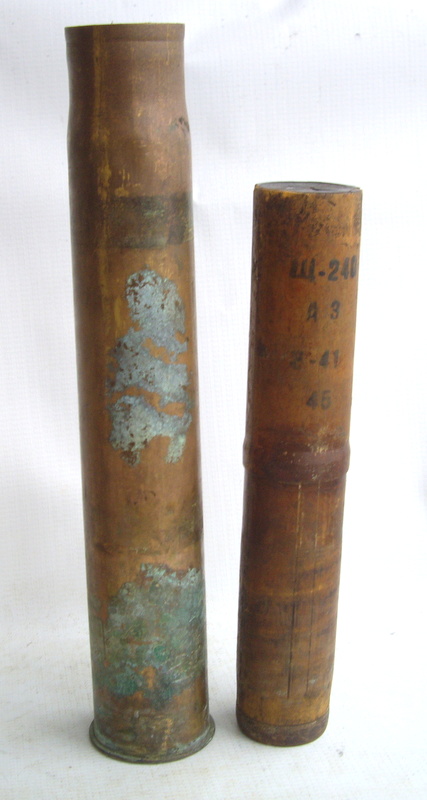 Остатки гильзы и корпуса картечи Щ-240 45-мм выстрела. СССР. Материал корпуса скорее всего - карболит.