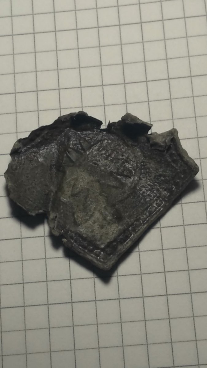Приветствую всех! Подскажите, пожалуйста, что это может быть? Основа похоже на свинец или олово, мягкий и тяжелый металл, сверху накладка из тонкого металла с узором. Сопутка монеты от 1764 до 1840 + конина, так же рядом по войне пуговицы вермахт и гильзы