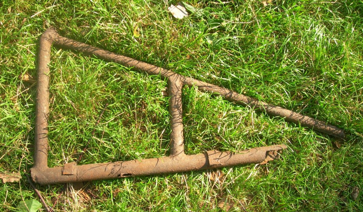 Еще попался такой фрагмент рамы, от мопеда, мне думается. Есть остатки зеленой краски. Поможете с определением коллеги?