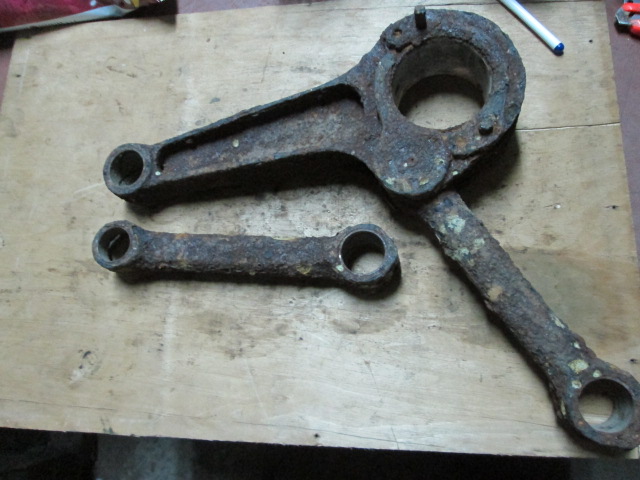 Приветствую Форум!Такие вот шатуны откопались,аж четыре комплекта.Подскажите,камрады,если кто встречал-от чего?Хитрый способ крепления к коленвалу...в смысле фиксации бугеля...я где-то когда-то видел нечто такое,но никак не вспомню где:-(Подозрение на авиацию,но вкладыши-вроде бронза,а там баббит должен быть,и не простой...Извиняюсь за отсутствие линейки-не было возможности..