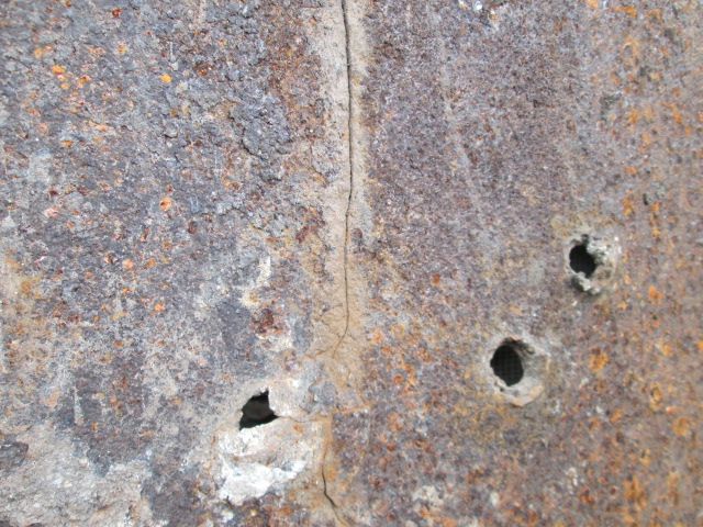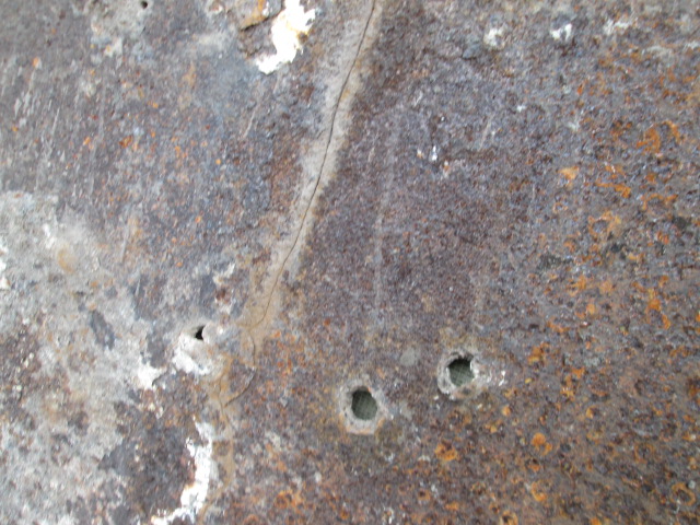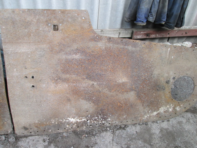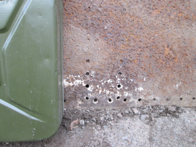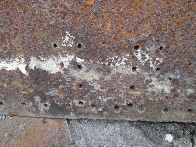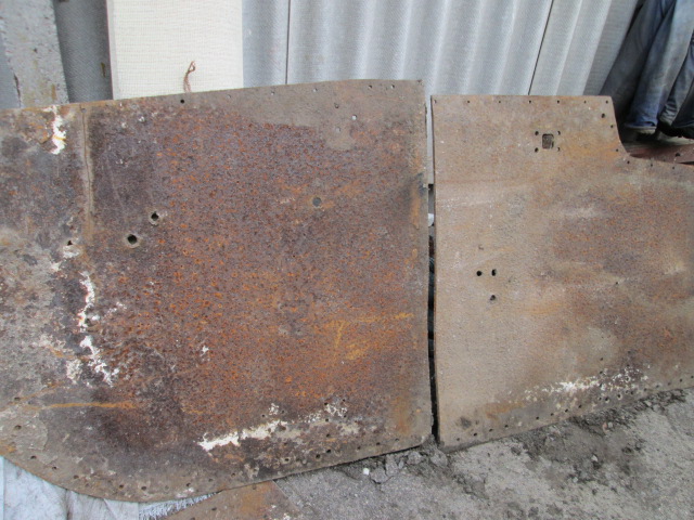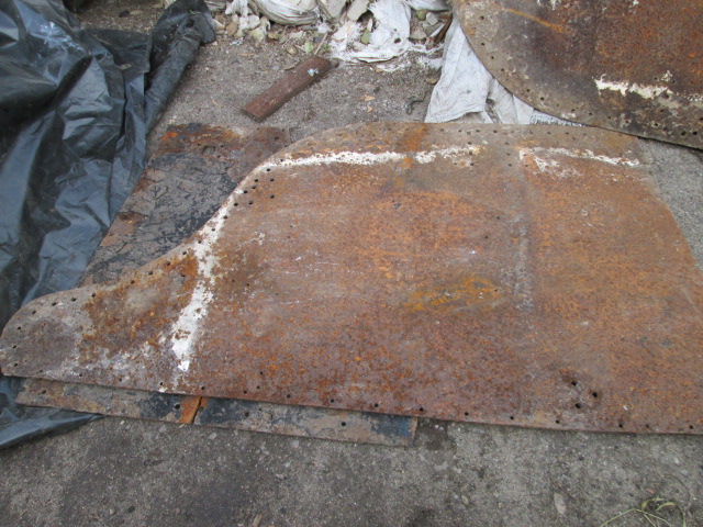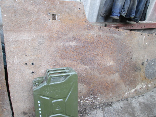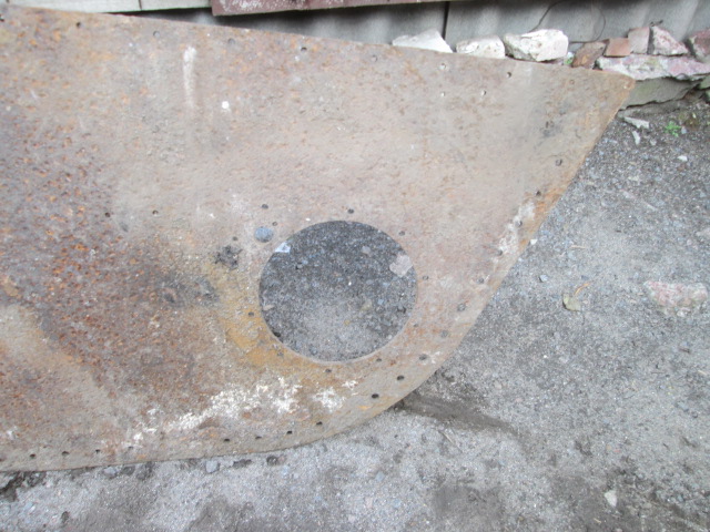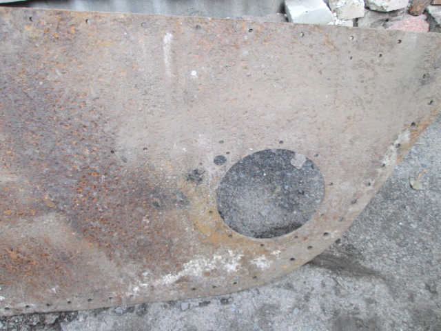 Приветствую форум!Такая вот находка на метломе-два броневых листа.Привезли,вроде, с какого-то завода,цех ломают,а это на полу было вместо настила.Достоверно не скажу.Как мне видится бортовая броня.Но для техники ВМв дюже тонкая-10 мм,да и клепка корпуса смущает.Может от чего-то более древнего?Те,кто привез в лом,распилили болгаркой надвое.На одном листе много пулевых пробоин и вмятин.