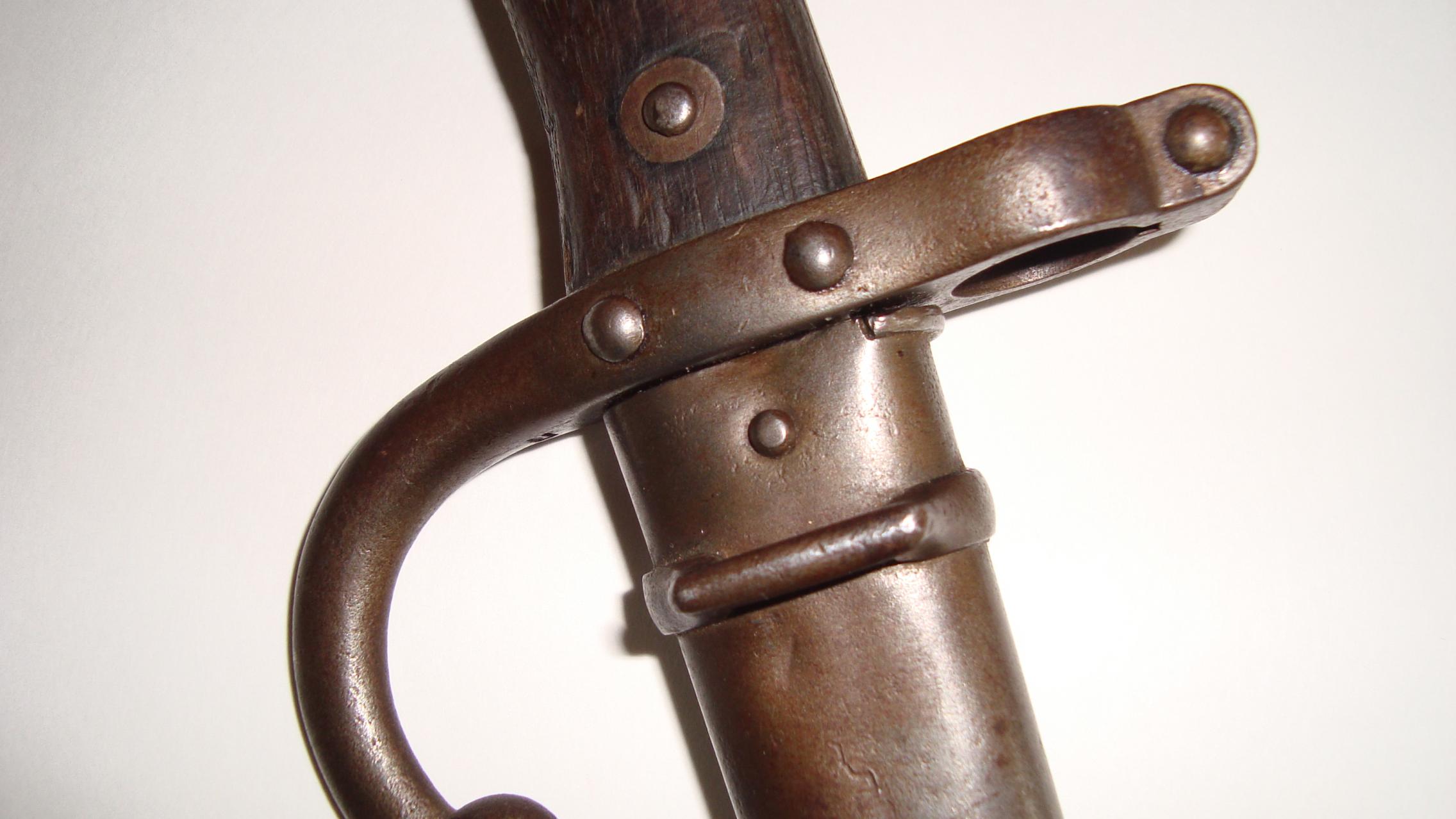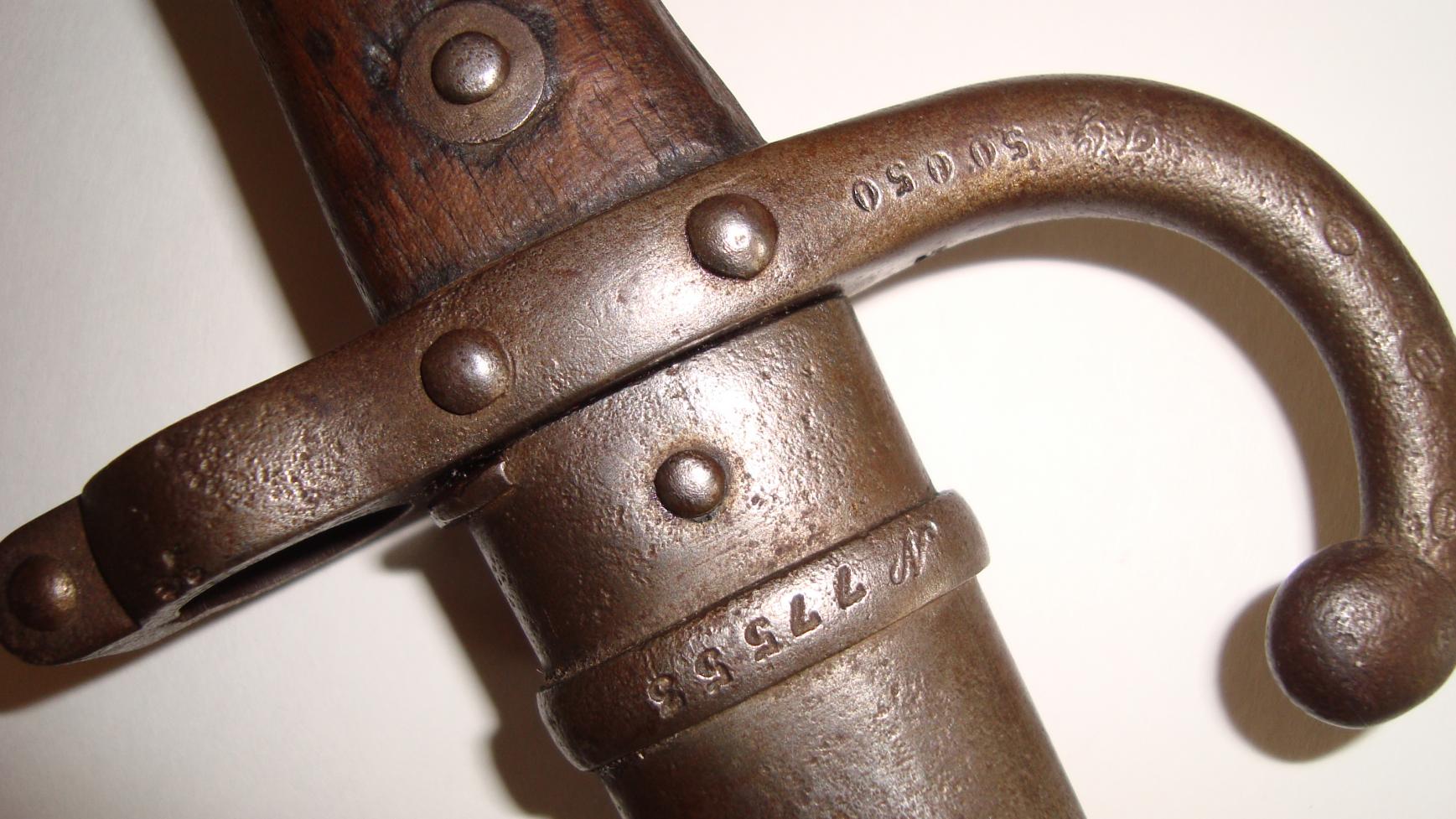Надпись на обуже клинка означает производителя и год выпуска данного штыка. Номера на рукояти штыка и на ножнах должны быть парные. Не парные номера означаю, что либо ножны заменялись в связи с утерей при боевых действиях, либо уже в наше время для комплектности ножны были подобраны к штыку кем то из владельцев.