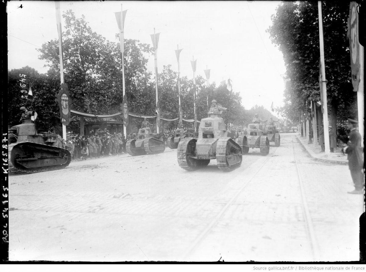 Monument du tank Renault et Grand Palais 1919 Tank français à Strasbourg, 9.XII. 1918 Tank Renault, fête sportive, Saint-Cloud [campagne de souscription à l' "Emprunt de la Libération", 20 octobre 1918] Un tank français en marche 1917