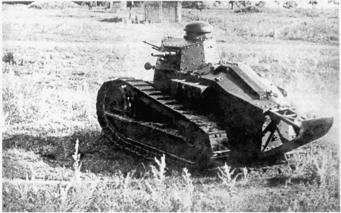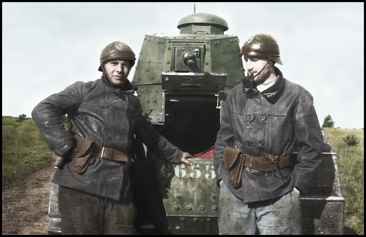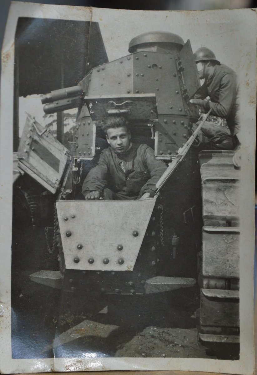Немецкий военнослужащий осматривает трофейный польский танк времён Первой мировой войны производства Франции. Осень 1939 года.