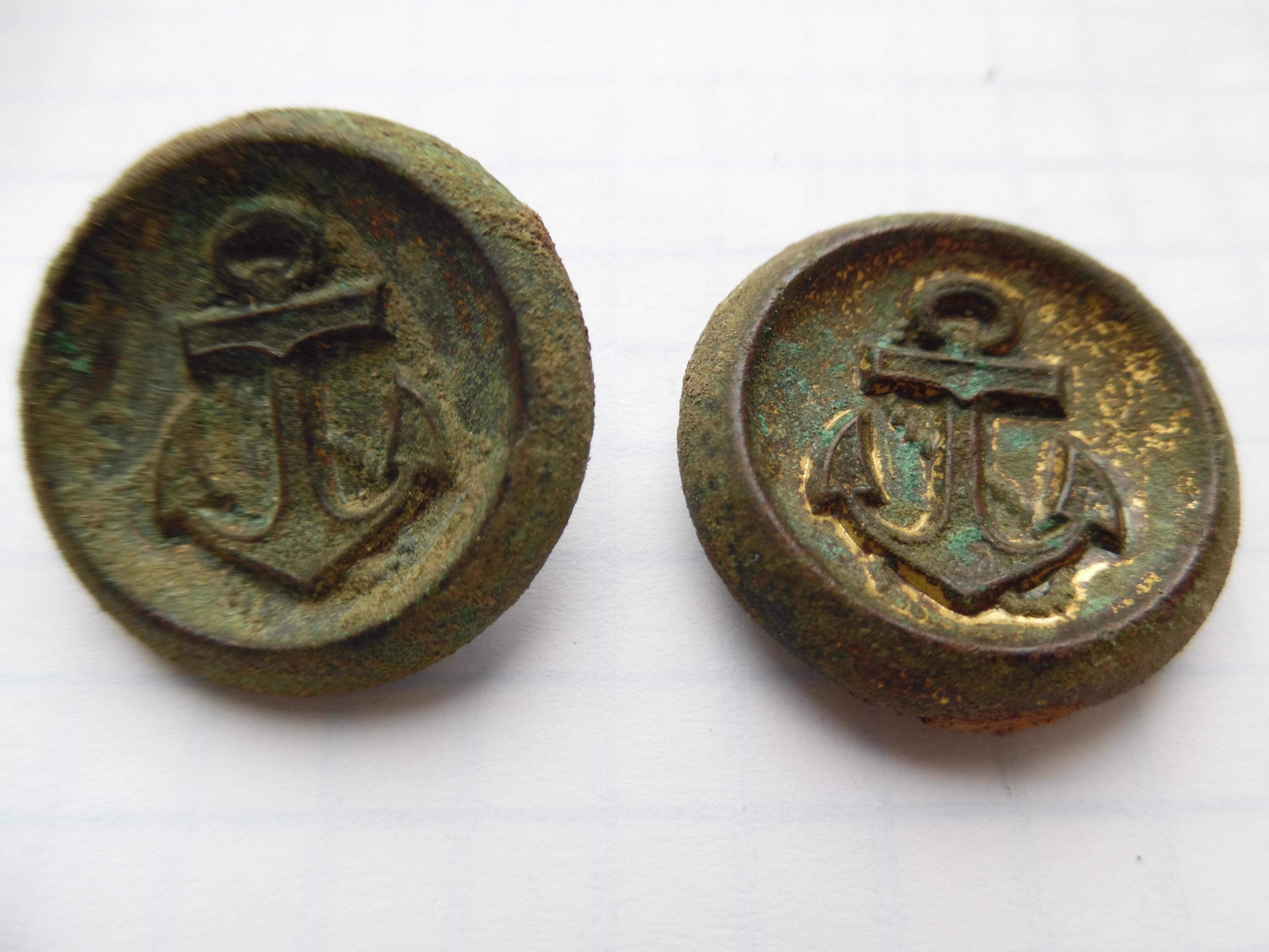 Є ще два морські незрозуміли гудзика (з однієї ямки). Дивився на польському сайті buttonarium і такого не знайшов. Можливо цивільні?. Додам їх до свого лоту з гудзиками.