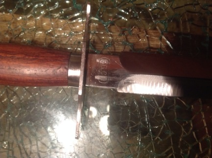 Добрый день. Это французский копник, называется "Мститель". Подскажите пожалуйста чье это клеймо и оригинальный нож или нет. На гарде еще выбита английская буква B. На ножнах просматривается латунь.
