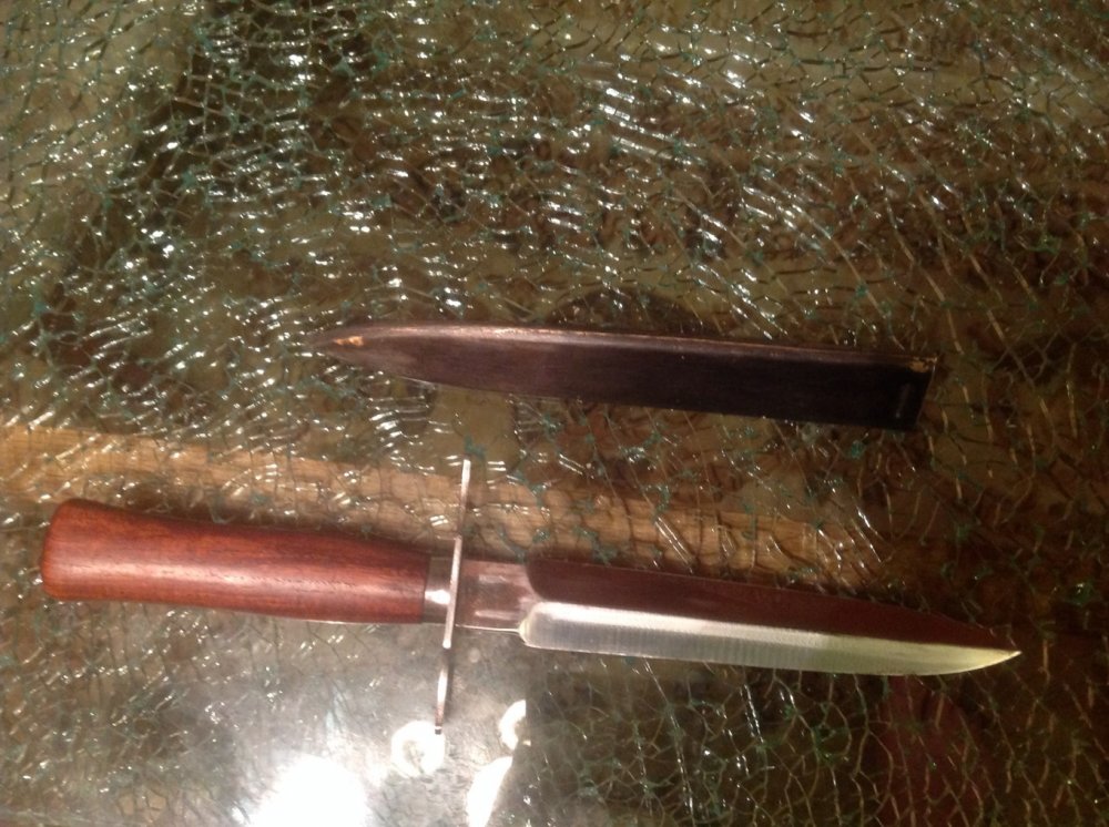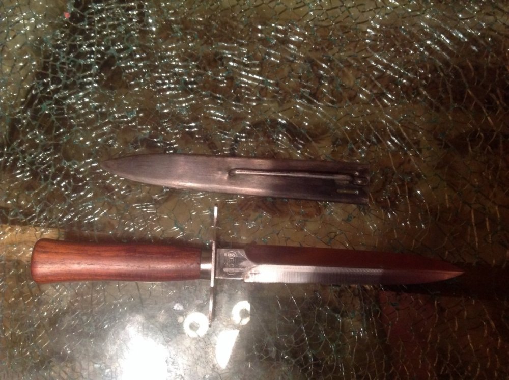 Еще раз Вам выражу своё недовольство размером фото, но то, что я по ним могу увидеть, выглядит неплохо. "В" это штамп приемки, насколько мне известно. На моём такая же буква на гарде. http://askalon.ws/topic/6384-мститель-le-vengeur-de-1870-poignard-de-tranchee-m1916/